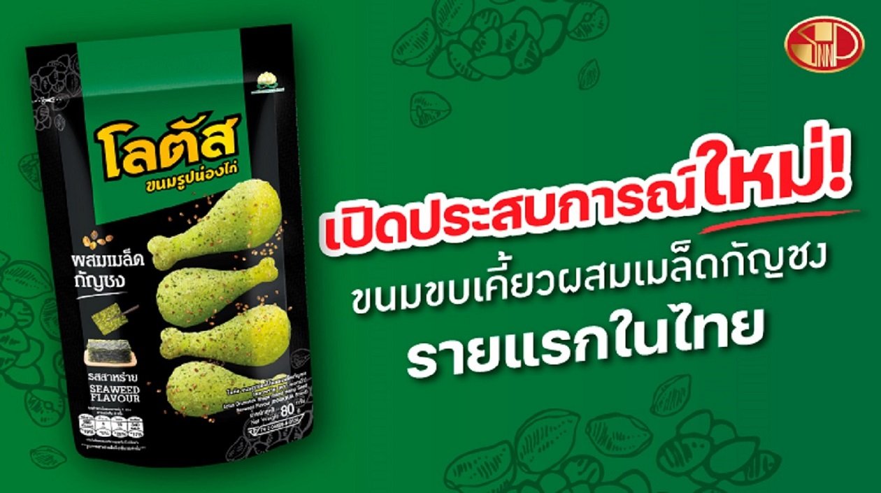 หลังจากปล่อยหมัดเด็ด เป็นผู้นำเทรนด์การทำตลาด “ขนมรูปน่องไก่โลตัส ผสมใบกัญชา รสบาร์บีคิว” ที่สร้างกระแสฮอตฮิตติดลมบนไปแล้วก่อนหน้านี้ ล่าสุด SNNP ขอตอกย้ำความเป็นผู้นำตลาดขนมขบเคี้ยวที่มีความแตกต่างรายแรกของไทย ด้วยการเปิดตัว “ขนมรูปน่องไก่โลตัส ผสมเมล็ดกัญชง รสสาหร่าย” เพิ่มรสชาติความอร่อยเพลิดเพลิน พร้อมวางจำหน่ายสุดเอ็กซ์คลูซีฟเฉพาะที่ร้านเซเว่นฯ เท่านั้น ในราคาซองละ 30 บาท