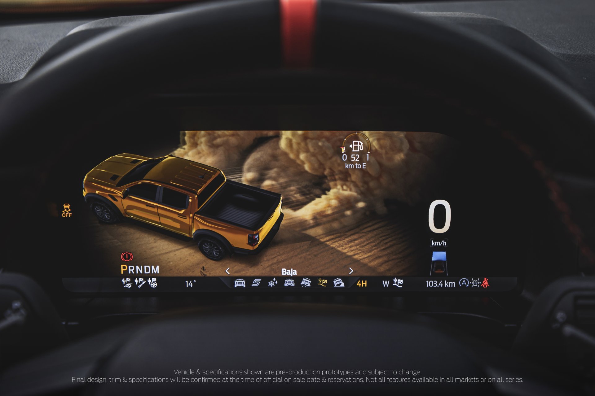 “เราต้องการให้โหมดบาฮาเป็นตัวแทนขั้นสุดของการขับขี่ออฟโรดความเร็วสูง” เดฟ กล่าว “ฟีเจอร์นี้เรียกได้ว่าเป็นหัวใจสำคัญที่ลูกค้าฟอร์ด เรนเจอร์ แร็พเตอร์ เจเนอเรชันใหม่ คาดหวัง” โหมดการขับขี่แต่ละโหมดii จะควบคุมการตั้งค่าการทำงานส่วนต่างๆ ของรถโดยละเอียด ตั้งแต่เครื่องยนต์ เกียร์ ความไวในการใช้ระบบเบรกอัตโนมัติ (ABS) การประมวลผล การยึดเกาะถนน ความมั่นคง ระบบท่อไอเสีย พวงมาลัย การตอบสนองต่อการเร่งเครื่อง ไปจนถึงการแสดงผลบนแผงหน้าปัดรถยนต์ และจอทัชสกรีน นอกจากนั้น สีของแผงหน้าปัดยังปรับเปลี่ยนให้เข้ากับการขับขี่แต่ละโหมดอีกด้วย