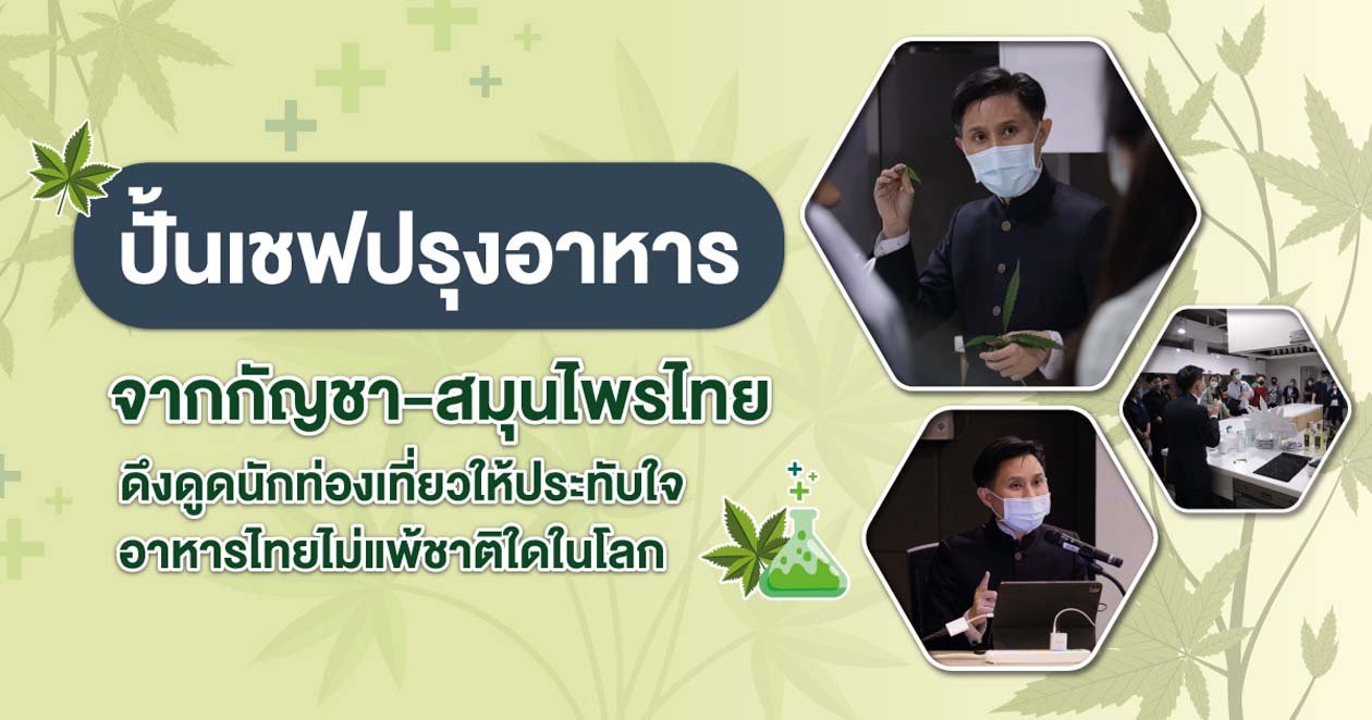 เปิดตำราสร้างเชฟมืออาชีพปรุงอาหารจากกัญชา-สมุนไพรไทย บูรณาการองค์ความรู้ที่สำคัญทางการแพทย์ทางวิทยาศาสตร์ ทางเภสัช งานวิจัยยุคใหม่ และภูมิปัญญาการแพทย์แผนไทยให้กับเชฟมืออาชีพ เพื่อดึงดูดนักท่องเที่ยวให้ประทับใจอาหารไทยที่ไม่แพ้ชาติใดในโลก