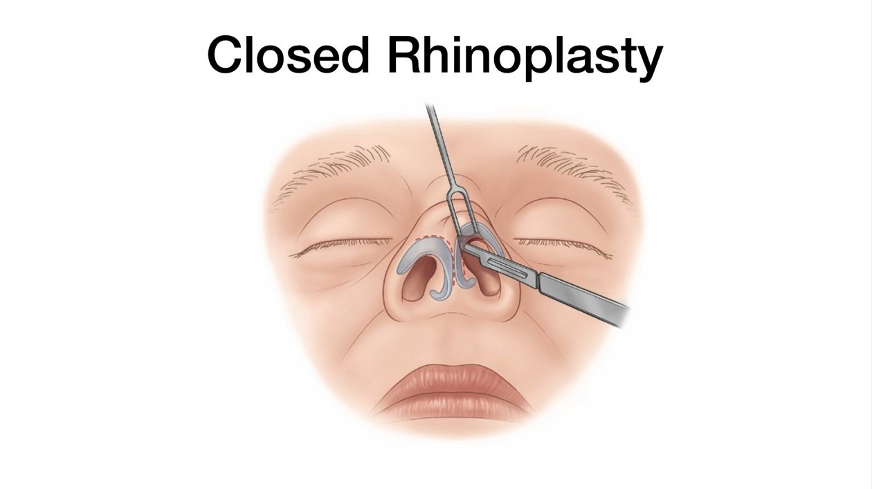 การผ่าตัดปิด (Closed Rhinoplasty หรือ Endonasal Rhinoplasty) คือ การผ่าตัดศัลยกรรมจมูกโดยที่แผลทั้งหมดอยู่ด้านในของรูจมูก และจะไม่มีแผลที่มองเห็นได้จากภายนอก ซึ่งศัลยแพทย์จะทำการเปิดแผลผ่าตัดเฉพาะในรูจมูก โดยเทคนิคนี้จะไม่มีการเปิดเนื้อเยื้อมาก ดังนั้นจึงเป็นเทคนิคที่ต้องอาศัยความชำนาญการของแพทย์ มีข้อดีคือ เกิดอาการบวมช้ำน้อย แผลผ่าตัดมีขนาดเล็กและมองไม่เห็นแผลจากภายนอก เพราะแผลจะซ่อนอยู่ภายในรูจมูก