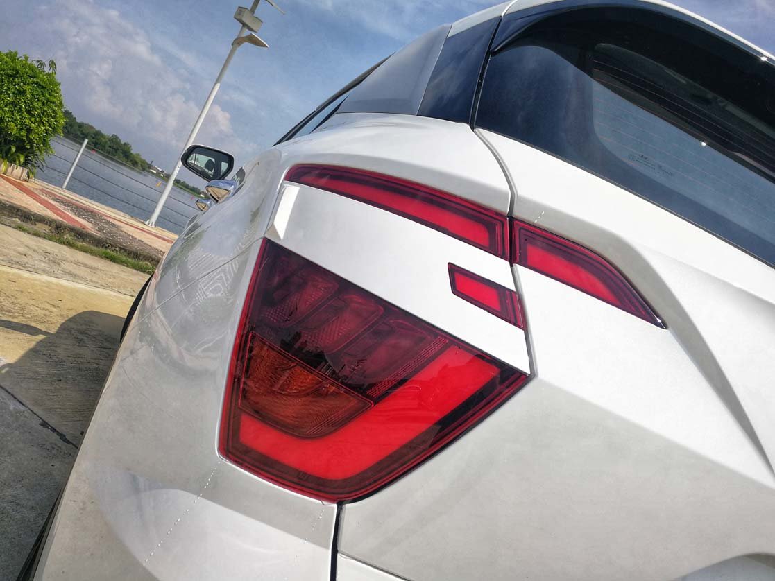 เส้นสายตัวรถด้านข้างมีความเป็นเหลี่ยมสัน รวมไปถึงการเล่นเส้นสายพร้อมกับดึงโป่งของซุ้มล้อทำให้ตัวรถดูบึกบึนขึ้นอีกเล่นน้อย กระจกมองข้างมาพร้อมกับไฟเลี้ยวแบบ LED เพิ่มความหรูหราด้วย ล้อแม็กขอบ 17 นิ้ว Diamond Cut Alloy ต่อกันที่ด้านท้าย ทีมออกแบบพยายามเล่นกับเส้นสายทำให้ดูมีมิติ แต่กับชุดท้าย LED ที่ออกแบบเหมือนขาดๆ เกินๆ อยู่นิดๆ กระจกบังลมหลังติดตั้งชุดปัดน้ำฝนมาให้เสร็จสรรพ และชายล่างของกันชน เลือกใช้สีแบบทูโทน จุดที่โดดเด่นของ Creta และดึงดูดความสนใจให้กับลูกค้าที่ชื่นชอบรถแนวนี้คือ หลังคา Panoramic Roof (มีเฉพาะรุ่น SEL เท่านั่น) พร้อม Roof Rack ติดตั้งมาให้จากโรงงาน