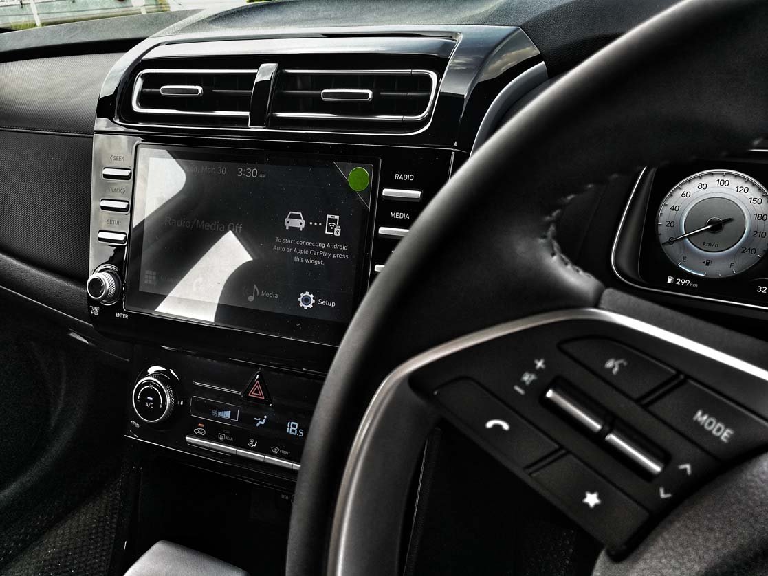 ส่วนระบบบังคับเลี้ยวเลือกใช้แบบ แร็คแอนด์พิเนี่ยนพร้อมเพาเวอร์ช่วยผ่อนแรงแบบไฟฟ้า(EPS) น้ำหนักของพวงมาลัยในโหมด Eco, Normal และ Smart ถือว่าเบากำลังดี ไม่เบาจนมีความรู้สึกว่าหวิวๆ ในการใช้งาน แต่พอปรับโหมดเป็น Sport น้ำหนักของพวงมาลัยดูมีน้ำมีนวลมากกว่าทำให้ขับเร็วๆ แล้วมั่นใจดีทีเดียว แต่กลับกันอัตราทดพวงมาลัยความเฉียบคมยังถือว่าออกยานๆ ไปนิด เวลาเลี้ยวเข้าสลาลอมต้องหมุนพวงมาลัยเยอะกว่าปกติรถถึงจะยอมเลี้ยวไปตามที่ใจเราต้องการ แต่ถ้ารู้จังหวะแล้วก็สามารถเล่นสนุกได้พอหอมปากหอมคอ