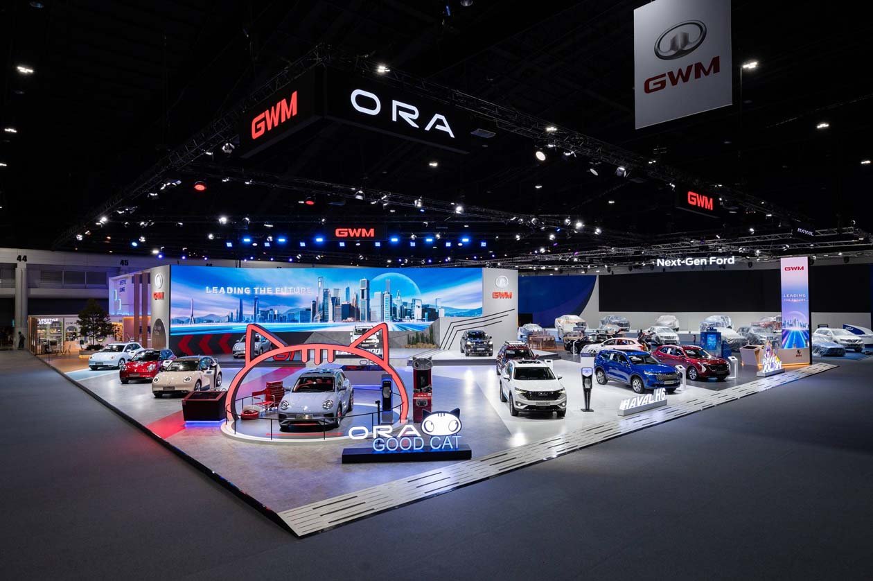 บูธของ เกรท วอลล์ มอเตอร์ ถูกออกแบบให้มีความโดดเด่นและได้รับการจัดสรรพื้นที่อย่างพิถีพิถัน การันตีด้วยรางวัลการออกแบบการจัดแสดงยอดเยี่ยม โดยด้านหน้าเป็นพื้นที่สำหรับจัดแสดงทัพรถยนต์ xEV หลากหลายรุ่นยอดนิยมโดยมีไฮไลต์สำคัญบนเวทีคือ TANK 300 HEV Concept Car ORA Good Cat GT และ All New HAVAL H6 Plug-in Hybrid SUV พร้อมจอ LED ขนาดใหญ่โอบรับผู้ที่เข้ามาเยี่ยมชม ถัดเข้ามาเป็นพื้นที่กิจกรรมและจัดแสดงสุดยอดเทคโนโลยีการขับขี่อัจฉริยะ อาทิ GWM LEMON Hybrid DHT Technology และ GWM LEMON E ส่วนพื้นที่ด้านหลังถูกเนรมิตให้เป็น Lifestyle Store GWM Bar และ Lifestyle Lounge ที่พร้อมต้อนรับผู้เข้าร่วมงานตลอดทั้งวัน พร้อมกิจกรรมสุดสนุกมากมายที่ผู้มาเยี่ยมชมจะเพลิดเพลินกับประสบการณ์รูปแบบใหม่จาก เกรท วอลล์ มอเตอร์