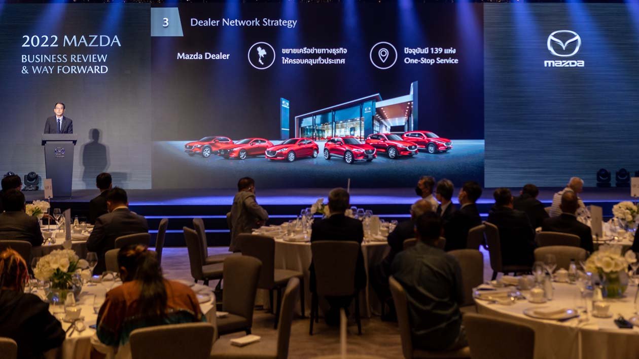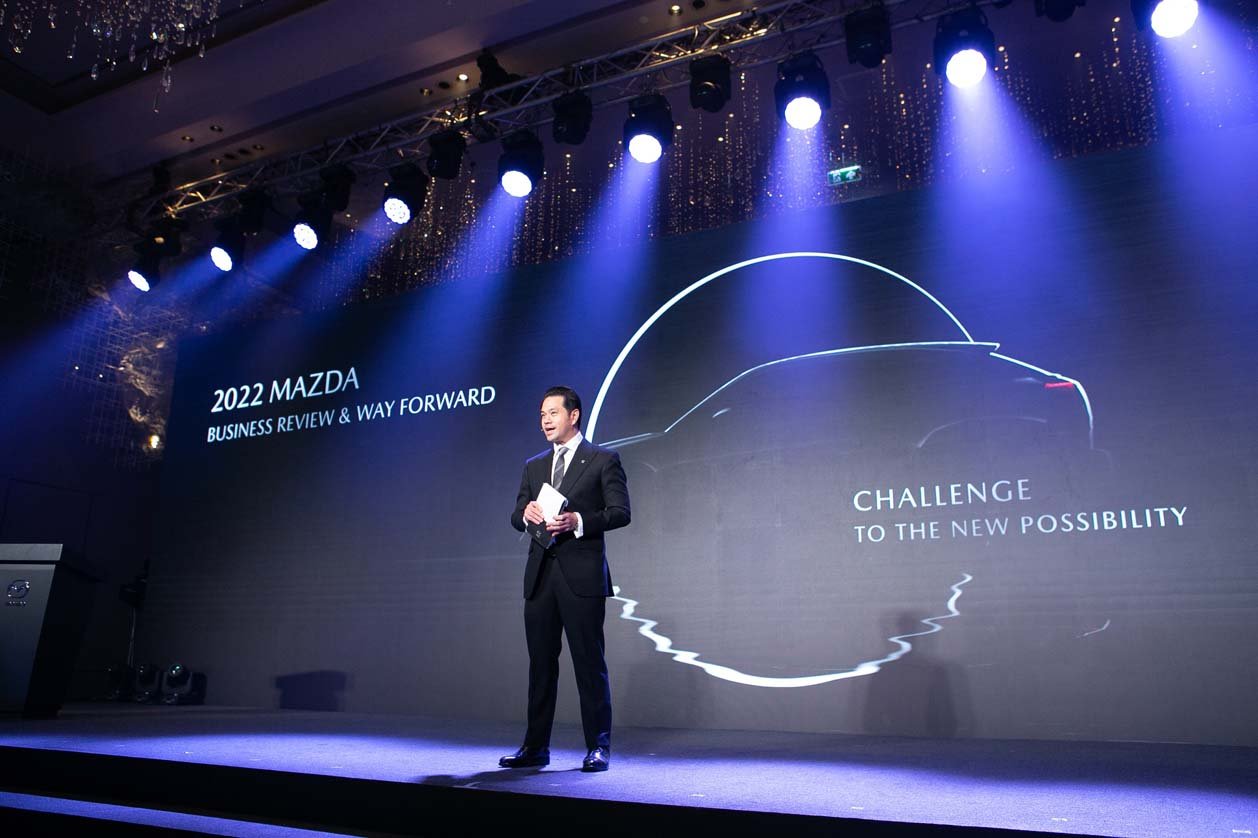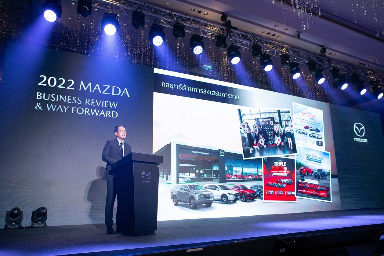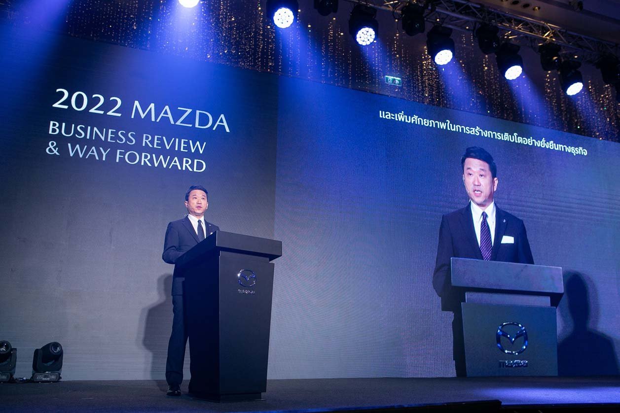 กรุงเทพฯ – ประเทศไทย, วันอังคารที่ 5 เมษายน 2565 – มาสด้าจัดงาน “2022 Mazda Business Review & Way Forward” ภายใต้ธีม “ท้าทายความสำเร็จอีกขั้น...สู่อนาคตที่เป็นไปได้” หรือ “Challenge to the New Possibilities” พร้อมเปิดเผยถึงผลสำเร็จในการดำเนินธุรกิจ ประจำปีงบประมาณ 2564 โดยเฉพาะตัวเลขยอดขายทะลุ 35,654 คัน ครองส่วนแบ่งการตลาด 4.5% โดยเฉพาะรถยนต์นั่งมาสด้า2 ยังคงครองใจลูกค้ามากที่สุด ด้วยยอดขายเกือบ 20,000 คัน ครอสโอเวอร์เอสยูวีมาสด้า CX-30 และมาสด้า CX-3 รวมกันกว่า 12,000 คัน เดินหน้าแตกไลน์ธุรกิจใหม่กับมาสด้า CPO ยกระดับมูลค่าราคารถมือสอง ปรับกลยุทธ์การบริหารธุรกิจสู่ความยั่งยืน ด้วย Retention Business Model เน้นสร้างคุณค่าของแบรนด์จากการบริการ ยกระดับการดูแลลูกค้าระดับพรีเมี่ยมด้วยโปรแกรม Privilege ตั้งเป้าปีนี้ยอดขายทะลุ 40,000 คัน เติบโตเพิ่มขึ้น 15%