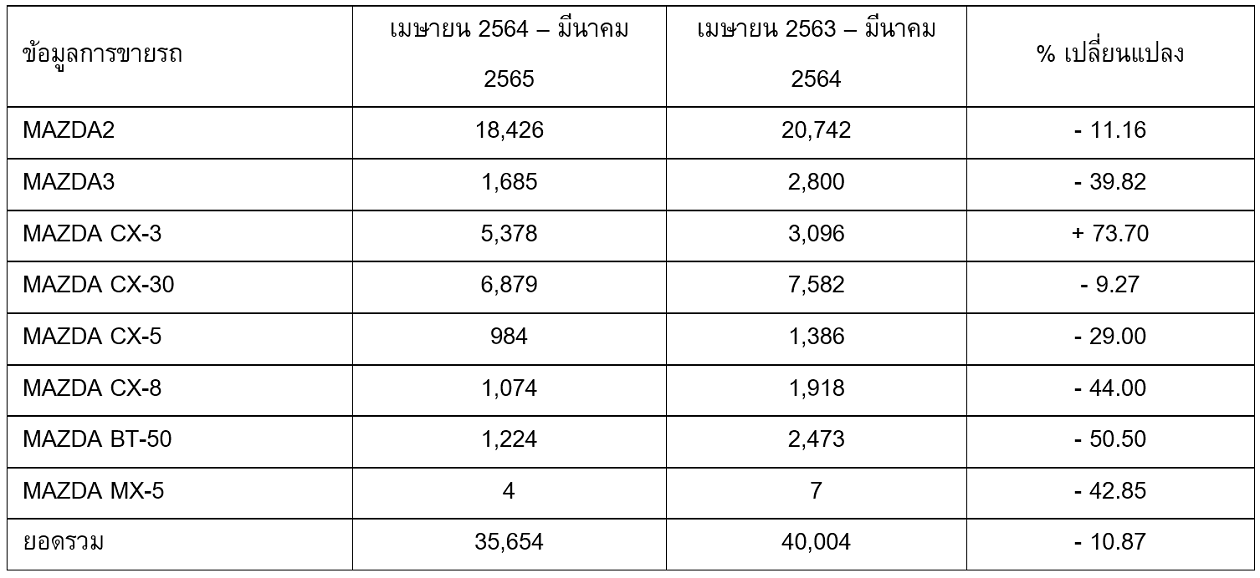 สรุปยอดจำหน่ายรถยนต์มาสด้าประจำปีงบประมาณ 2564 เทียบกับปีงบประมาณ 2563