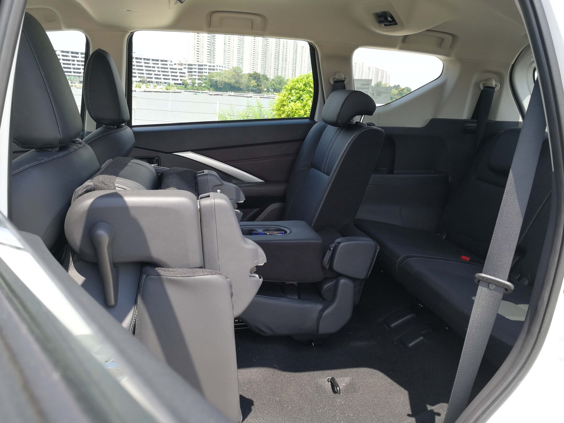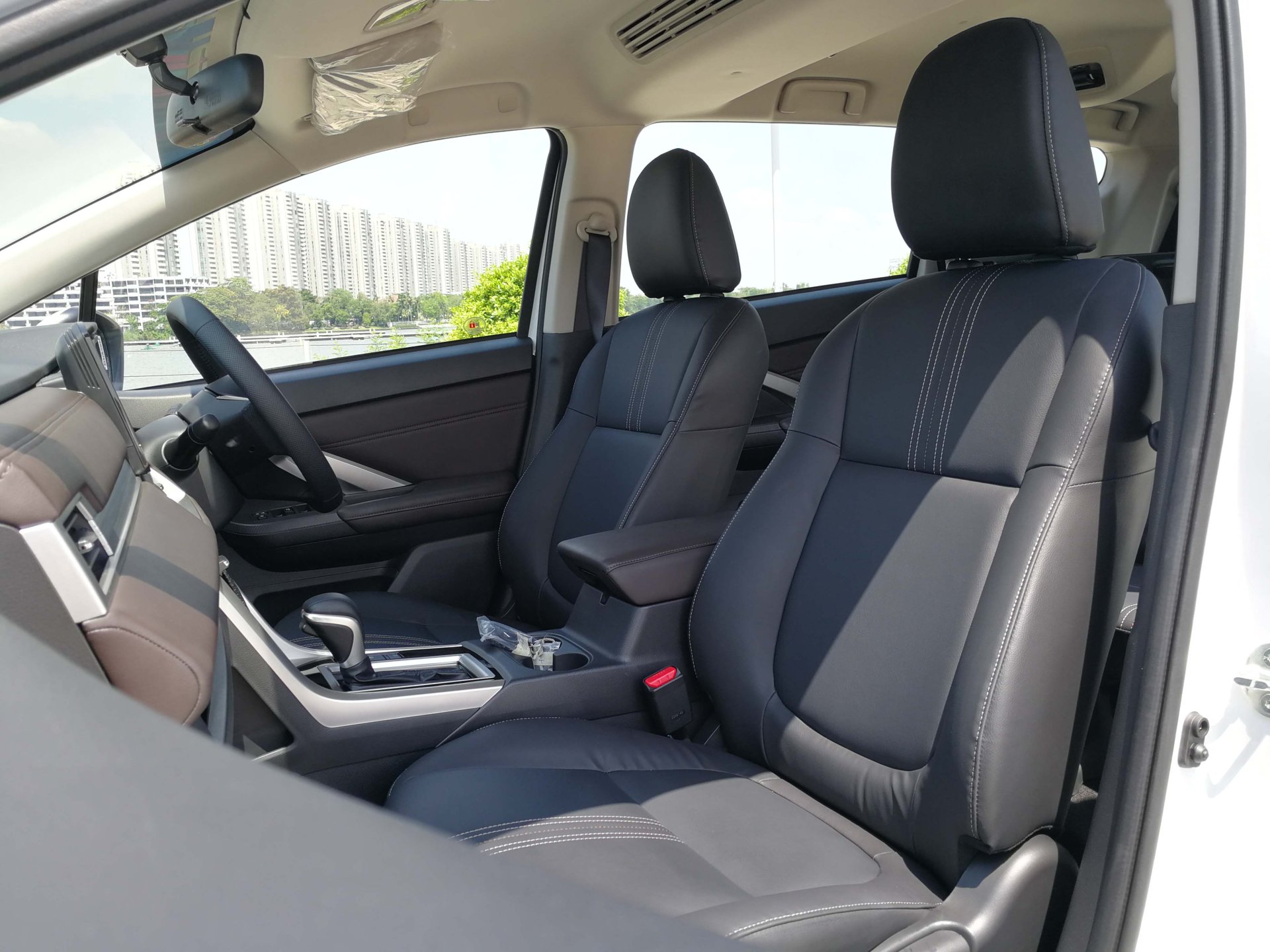 คอนโซลเกียร์ออกแบบให้เป็นชิ้นเดียวกับคอนโทรลกลาง ยาวพาดลงมาตั้งแต่ช่องแอร์กลาง ชุดคันเกียร์ยังคงหน้าตาแบบเดิม แต่ที่เพิ่มเข้ามาก็คือ สวิทช์เบรกมือไฟฟ้า และ Auto Hold เบาะนั่งทั้ง 3 แถวยังคงแบบเดียวกับ Xpander ตัวเดิม ซึ่งปรับเปลี่ยนตามลักษณะการใช้งานได้หลากหลายตามการใช้งาน(เบาะนั่งแถวที่ 2 ได้ติดตั้งที่วางไว้แก้วไว้บริเวณเท้าแขนกลาง) พร้อมกับชุดแอร์สำหรับผู้โดยสารตอนหลัง แถมยังมีช่องชาร์จไฟแบบ USB แบบ Type A และ Type C อย่างละช่องบริเวณคอนโซกลาง สำหรับผู้โดยสารแถวที่ 2