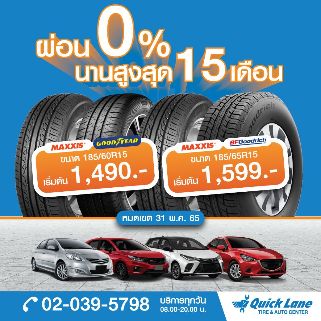 ยางทุกรุ่น ทุกยี่ห้อ มีบริการผ่อน 0% นานสูงสุด 15 เดือนกับบัตรเครดิตชั้นนำ