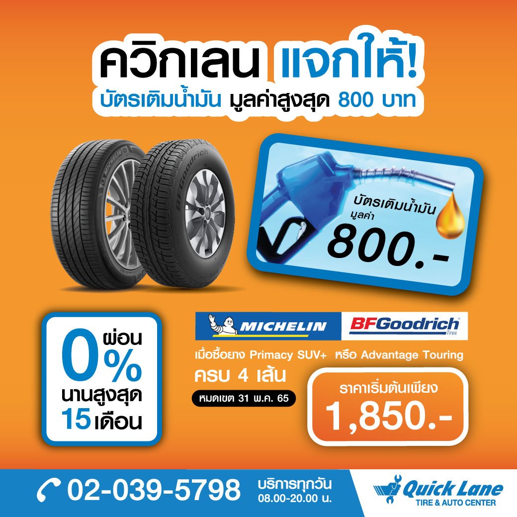 พิเศษ เมื่อซื้อยางมิชลิน หรือบีเอฟกู๊ดริช ครบ 4 เส้น รับไปเลยบัตรเติมน้ำมัน มูลค่าสูงสุด 800 บาท