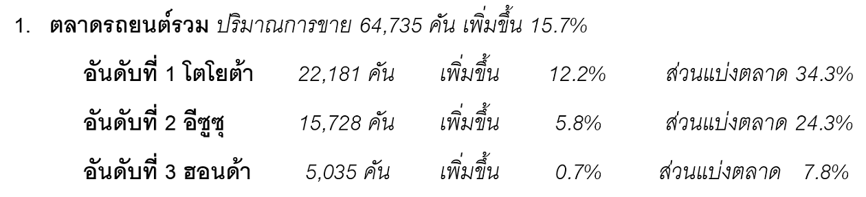 ปริมาณการจำหน่ายรถยนต์ เดือนพฤษภาคม2565