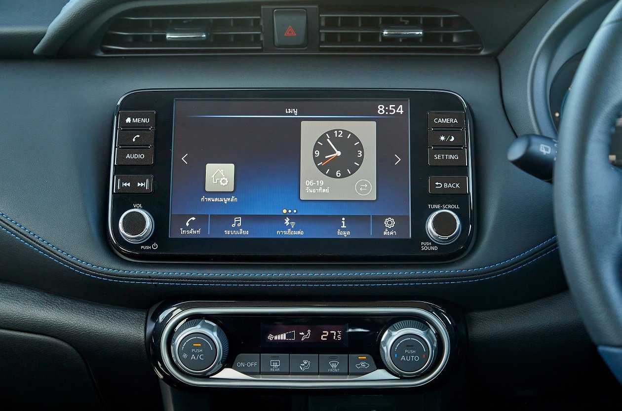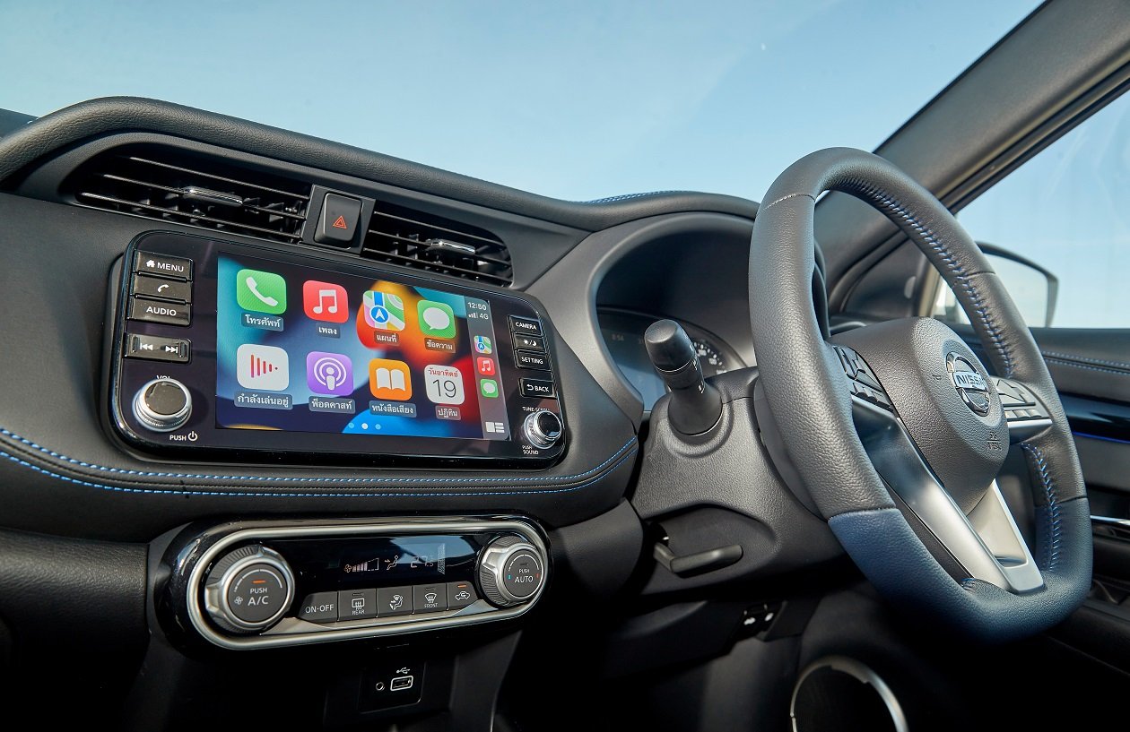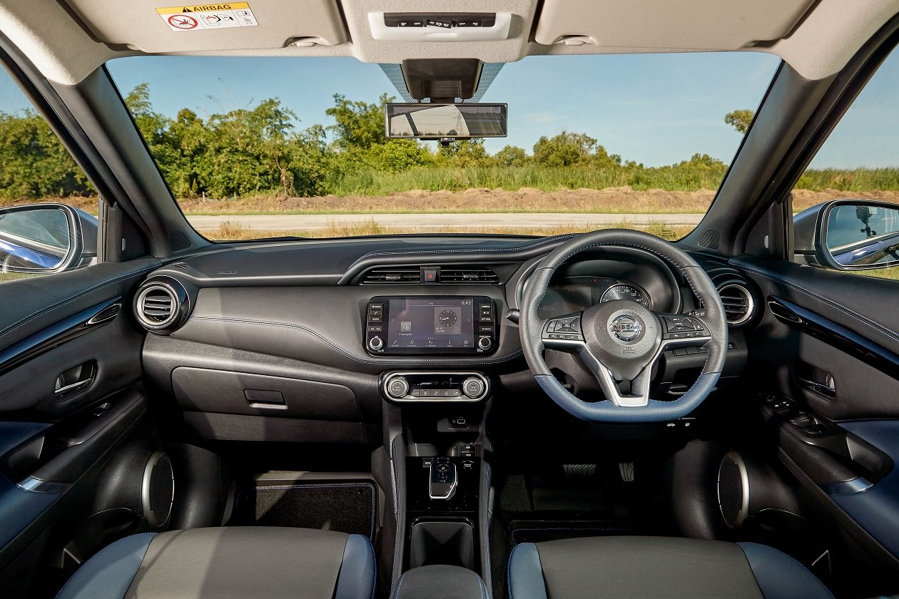 ส่วนภายในก็มีการออกแบบชุดแผงหน้าปัด และส่วนคอนโซลกลางใหม่หมด ทำให้ดูมีความหรูหราไฮเทคมากขึ้นกว่าของเดิม และยังให้ความสะดวกสบายตรงบริเวณที่วางเท้าผู้โดยสารตอนหน้ามากขึ้นอีกด้วย คันเกียร์ไฟฟ้าดีไซน์ใหม่ใช้งานได้ง่ายขึ้น เพิ่มวัสดุบุนุ่มคุณภาพสูงในหลายๆ จุดที่สัมผัสกับผู้ใช้งานบ่อยๆ เช่น ที่พนักวางแขน ที่คอนโซลกลาง นอกจากนี้ยังให้ความใส่ใจกับส่วนที่ลูกค้ามีการใช้งานเป็นประจำ อาทิ ที่วางแก้วตอนหน้าใหม่ ที่สามารถรองรับแก้วเครื่องดื่มได้ทุกแบบและทุกขนาดที่มีอยู่ในตลาด ซึ่งการออกแบบนี้เป็นผลมาจากการวิจัยความต้องการของผู้บริโภคอย่างแท้จริง นอกจากนี้ ยังได้ปรับปรุงระบบอินโฟเทนเมนต์ นิสสันคอนเน็ค (NissanConnect) ให้รองรับการเชื่อมต่อสมาร์ทโฟนทั้งระบบ Android Auto** และ Apple CarPlay ให้ผู้ขับขี่สามารถใช้งานแอพพลิเคชั่นจากสมาร์ทโฟนผ่านหน้าจอสัมผัสขนาด 8 นิ้วได้อย่างสะดวกสบายความกว้างขวางของห้องโดยสารผู้ใหญ่ 4 คนนั่งกันได้หลวม ๆ สบาย ๆ หรือจะแทรกเด็กคนที่ 5 ก็ยังไปกันได้สบายไม่อึดอัด