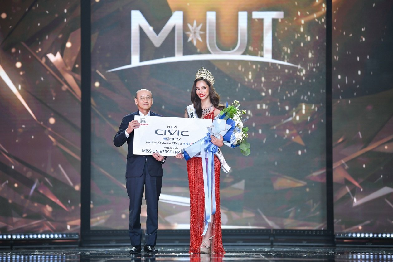 (กรุงเทพฯ – 1 สิงหาคม 2565) บริษัท ฮอนด้า ออโตโมบิล (ประเทศไทย) จำกัด หนึ่งในผู้สนับสนุนหลักเวทีการประกวด มิสยูนิเวิร์สไทยแลนด์ 2022 (Miss Universe Thailand 2022) นำโดย นายไพโรจน์ ศรียุกต์รัตน์ กรรมการและเจ้าหน้าที่บริหาร สายงานบริหารและความร่วมมือ ร่วมแสดงความยินดีกับ “น้องแอนนา เสืองามเอี่ยม” สาวงามหมายเลข 19 ผู้คว้ามงกุฎเวทีมิสยูนิเวิร์สไทยแลนด์ 2022 และรองชนะเลิศทั้ง 4 คน พร้อมมอบรางวัลพิเศษ รถยนต์ ฮอนด้า ซีวิค อี:เอชอีวี ใหม่ รุ่น e:HEV RS สีแดงอิกไนต์ (เมทัลลิก) มูลค่า 1,259,000 บาท ให้แก่สาวงามผู้ชนะเลิศ ณ เวทีการประกวดรอบสุดท้าย ทรูไอคอน ฮอลล์ ไอคอนสยาม