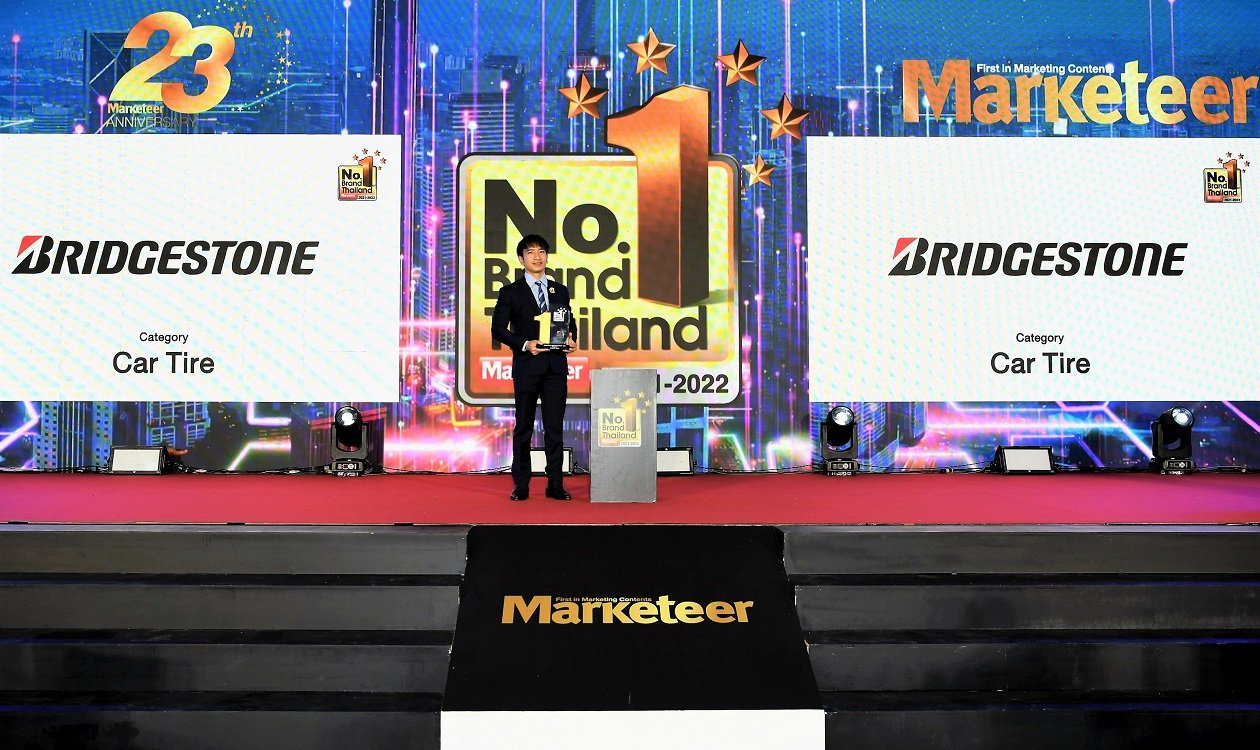 คุณบัณฑิต จันทรคณา ผู้จัดการส่วนงานการตลาดปฏิบัติการ บริษัท บริดจสโตนเซลส์ (ประเทศไทย) จำกัด รับรางวัลเกียรติยศ “แบรนด์ยอดนิยมอันดับหนึ่งของประเทศไทย” ประเภทยางรถยนต์ หรือ “No.1 Brand Thailand 2021-2022” ซึ่งมาจากการสำรวจความคิดเห็นของประชาชนทั่วประเทศ โดยนิตยสาร Marketeer ต่อเนื่องเป็นปีที่ 11 พร้อมเผยว่า “บริดจสโตนขอขอบคุณทุกความเชื่อมั่น และมอบความไว้วางใจในแบรนด์บริดจสโตนเสมอมา เรายังคงยึดมั่นคำสัญญาว่าจะดำเนินธุรกิจโดยให้ลูกค้าเป็นศูนย์กลางสำคัญ (Customer-Centric) ในการรับฟังความต้องการ ศึกษาพฤติกรรมและข้อมูลเชิงลึกของผู้บริโภค พร้อมนำเสนอโซลูชั่นผ่านนวัตกรรมและกลยุทธ์ที่มีส่วนช่วยในการแก้ไขปัญหาเพื่อให้ตรงกับความต้องการและความพึงพอใจของผู้บริโภคมากที่สุดทั้งในกลุ่มยางรถยนต์นั่งและรถบรรทุกขนาดเล็ก และกลุ่มยางรถยนต์เพื่อการพาณิชย์ ด้วยการนำเสนอผลิตภัณฑ์คุณภาพและเทคโนโลยีที่ดีเยี่ยม คุ้มค่าต่อการใช้งาน พร้อมเครือข่ายการให้บริการทั่วประเทศ รวมถึงบริการสอบถามข้อมูลผลิตภัณฑ์ผ่านทางคอลเซ็นเตอร์ได้ตลอด 24 ชั่วโมง เพื่อมอบความอุ่นใจในทุกการเดินทางไปกับบริดจสโตน