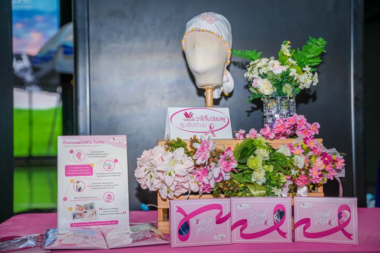 พร้อมมอบ Balancing Bra บรารุ่นพิเศษและเต้านมเทียม เพื่อการเติมเต็มให้สตรีผู้สูญเสียเต้านม เพื่อส่งต่อไปยังผู้ป่วยมะเร็งเต้านมโดยมอบให้แก่ สถาบันมะเร็งแห่งชาติ จำนวน 100 ชุด โรงพยาบาลมะเร็งภูมิภาค 7 แห่ง แห่งละ 50 ชุด ได้แก่ โรงพยาบาลมะเร็งชลบุรี โรงพยาบาลมะเร็งอุบลราชธานี โรงพยาบาลมะเร็งลำปาง โรงพยาบาลมะเร็งสุราษฎ์ธานี โรงพยาบาลมหาวชิราลงกรณธัญบุรีโรงพยาบาลมะเร็งอุดรธานี และโรงพยาบาลมะเร็งลพบุรี อีกทั้งมอบหมวกประดิษฐ์จากกิจกรรม “หมวกสวย ใจสวย” ภายใต้โครงการวาโก้โบว์ชมพู สู้มะเร็งเต้านม ที่มีจิตอาสาจากหน่วยงาน องค์กรต่างๆ ทั่วประเทศ รวมพลังในการประดับตกแต่งหมวกให้มีความงดงามพร้อมการ์ดเขียนส่งกำลังใจ มอบให้กับผู้ป่วยมะเร็งที่อยู่ในความดูแลของสถาบันมะเร็งแห่งชาติ และโรงพยาบาลมะเร็งภูมิภาคทั่วประเทศ