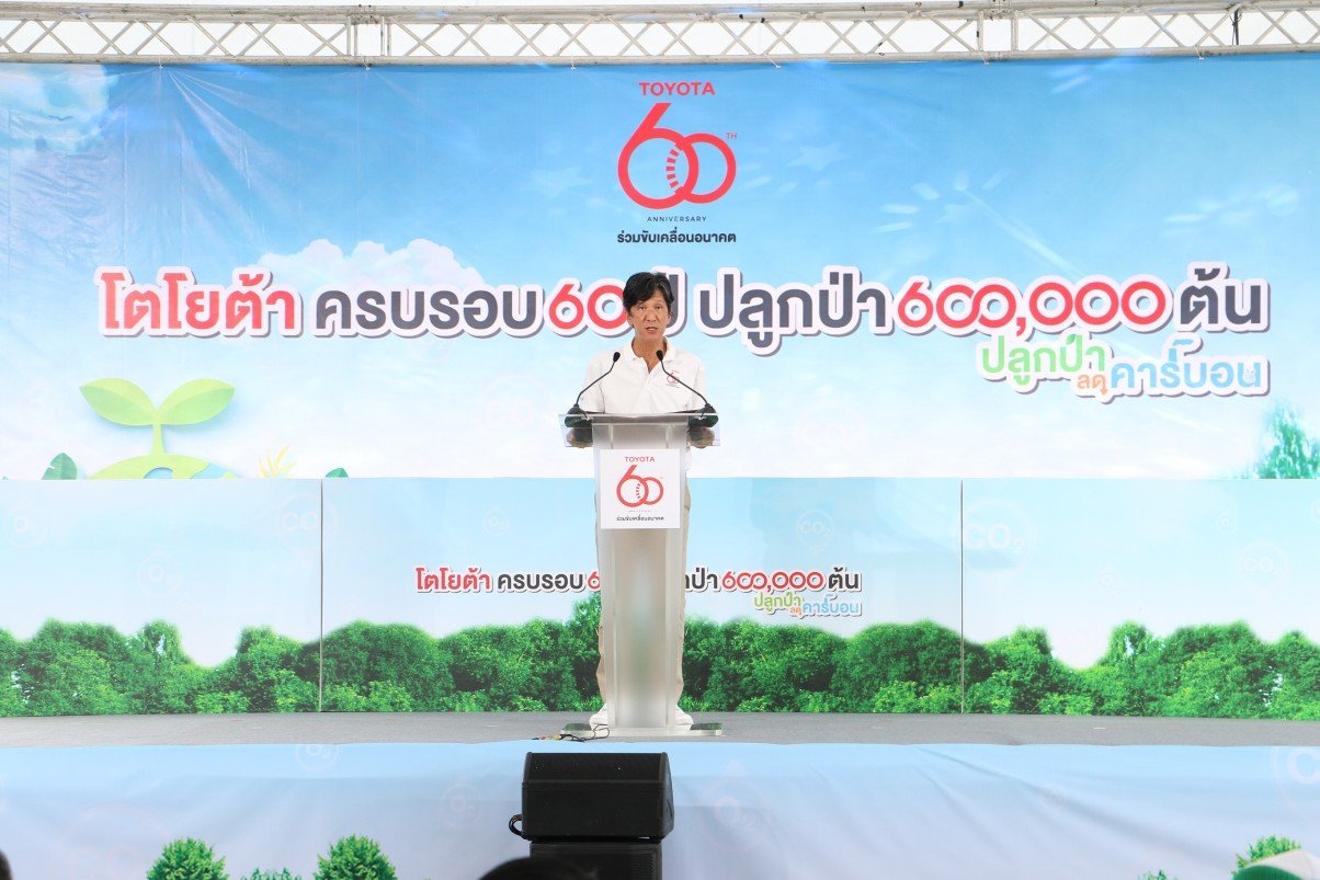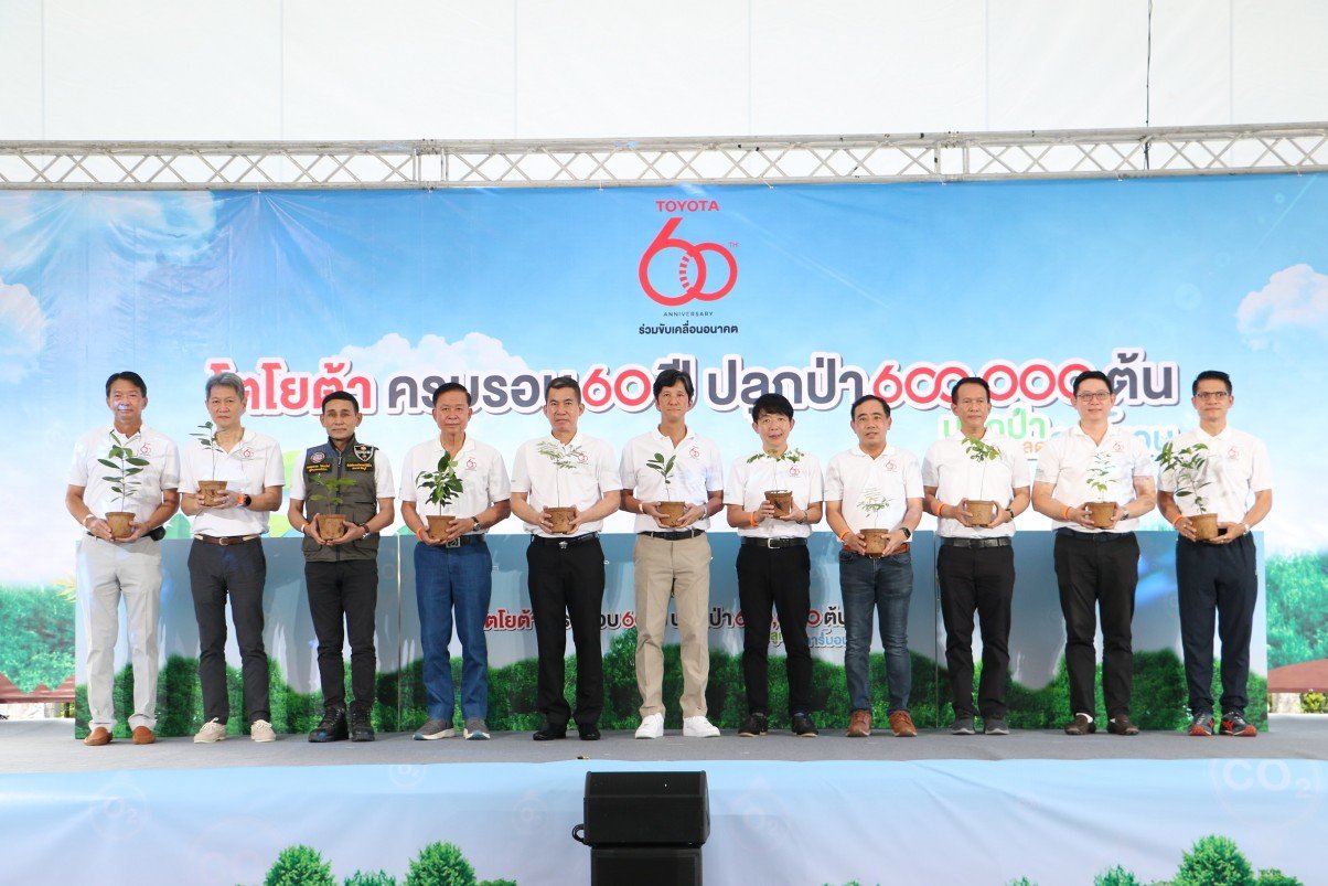 นอกจากนั้น เพื่อเป็นการขยายผลการดำเนินงานด้านสิ่งแวดล้อม เนื่องในวาระโอกาสฉลองการดำเนินงานในประเทศไทยครบ 60 ปี โตโยต้าจึงได้ริเริ่มโครงการ “โตโยต้า ครบรอบ 60 ปี ปลูกป่า 600,000 ต้น” เพื่อเป็นอีกหนึ่งส่วนสำคัญในการช่วยดูดซับก๊าซคาร์บอนไดออกไซด์ โดยตั้งเป้าเป็นโครงการระยะยาว ร่วมกับหน่วยงานท้องถิ่น กรมป่าไม้ ตลอดจนพันธมิตรทางธุรกิจต่าง ๆ ในการเพิ่มพื้นที่สีเขียวอย่างต่อเนื่อง โดยสำหรับปี 2565 ได้วางแผนในการเพิ่มพื้นที่สีเขียวภายในโรงงานโตโยต้าทั้ง 3 แห่ง เป็นจำนวน 200,000 ต้น เริ่มต้นจากการปลูกป่า 18,000 ต้น ที่โรงงาน โตโยต้าบ้านโพธิ์ในวันนี้ ซึ่งได้รับการสนับสนุนต้นกล้าจากกรมป่าไม้ และตั้งเป้าขยายการดำเนินงานสู่ภายนอก อีก 400,000 ต้น ต่อไป เพื่อให้ครบตามเป้าหมายในปีนี้ ที่ 600,000 ต้น