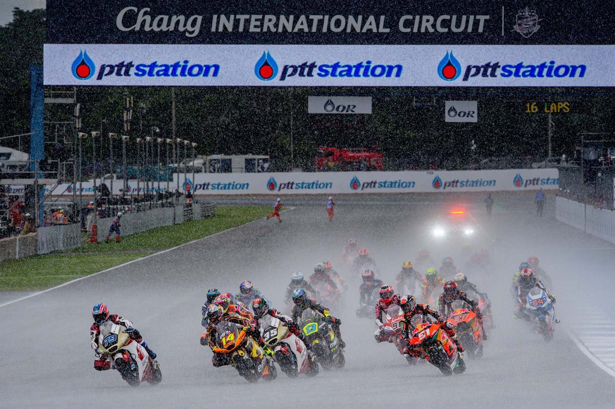 จุดเปลี่ยนของเรซนี้เกิดขึ้นจากฝนที่เทกระหน่ำลงมาอย่างหนักก่อนเริ่มแข่งขันไม่กี่นาที ส่งผลให้กรรมการประกาศเป็น “เว็ตเรซ” และลดระยะทางลงเหลือ 16 รอบสนาม โดย สมเกียรติ ที่ได้ออกสตาร์ทจากโพลขยับขึ้นนำอย่างรวดเร็ว ขณะที่ เขมินท์ ก็ไต่จากกริดที่ 16 ขึ้นมาเกาะท็อปเท็นได้ตั้งแต่รอบแรกเช่นกัน