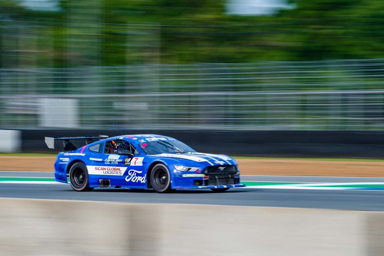 แจ็ค เลมวาร์ด พร้อมฟอร์ด มัสแตง หมายเลข 44 ที่ใช้เครื่องยนต์โคโยตี้ อลูมิเนเตอร์ 5.2 ลิตร ร่วมแข่งขันในรายการไทยแลนด์ ซูเปอร์คาร์ จีทีซี