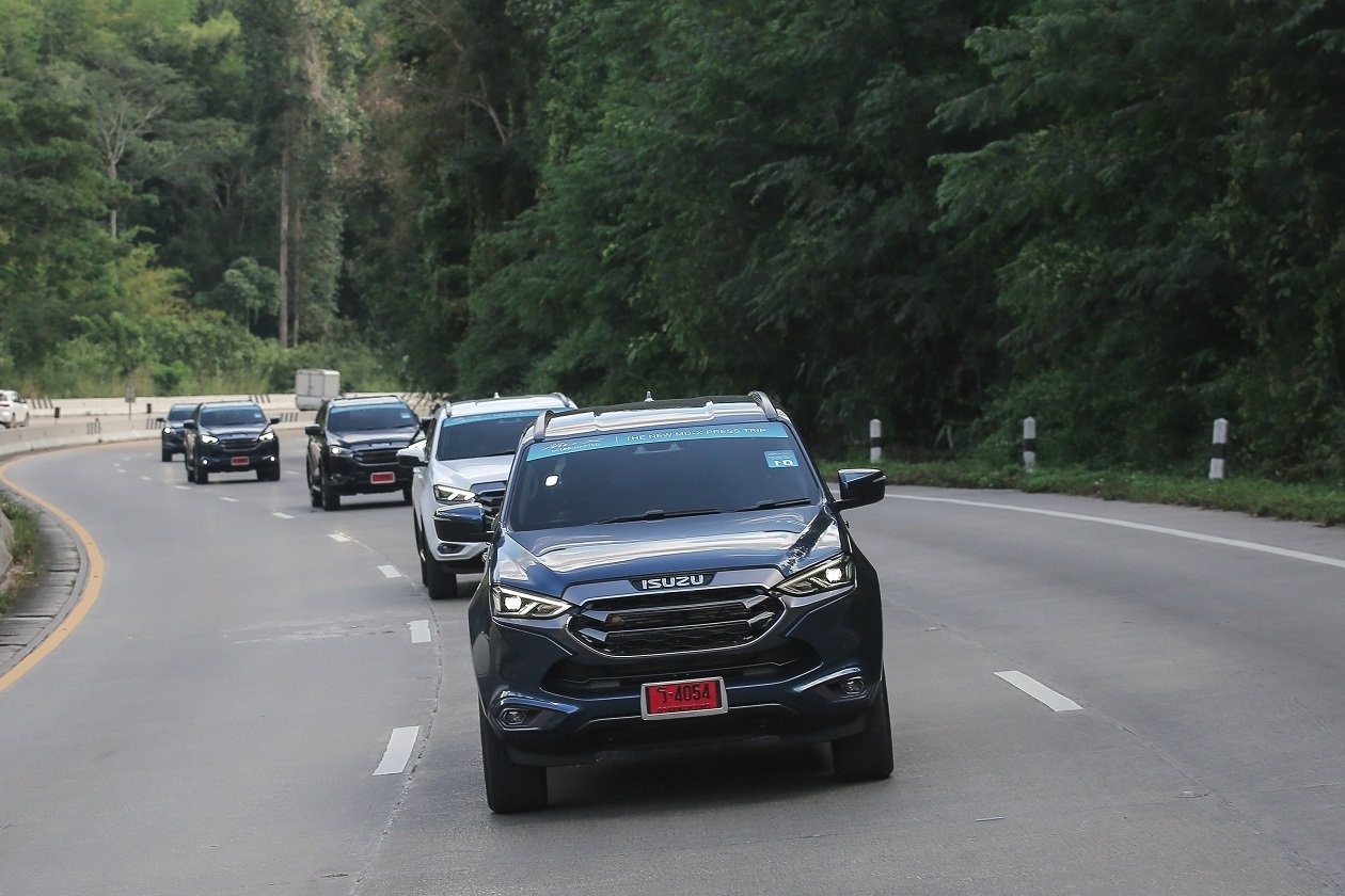 เราได้ขับรถเบอร์ 5 อยู่รองสุดท้ายของขบวน ซึ่งเป็นรุ่น MU-X 1.9 Ddi ดีเซลเทอร์โบ 4 สูบ 16 วาล์ว DOHC คอมมอนเรล ไดเรค อินเจคชัน พร้อมเทอร์โบแปรผันแบบครีบ VGS มาพร้อม อินเตอร์คูลเลอร์ ให้กำลังสูงสุด 150 แรงม้า ที่ 3,600 รตน. แรงบิดสูงสุด 350 นิวตัน-ม. ที่ 1,800-2,600 รตน. ส่งกำลังผ่านเกียร์อัตโนมัติ 6 จังหวะแบบ Sequential Shift พร้อม Manual Mode บวก ลบ ที่รองรับน้ำมันดีเซลได้ถึง B20