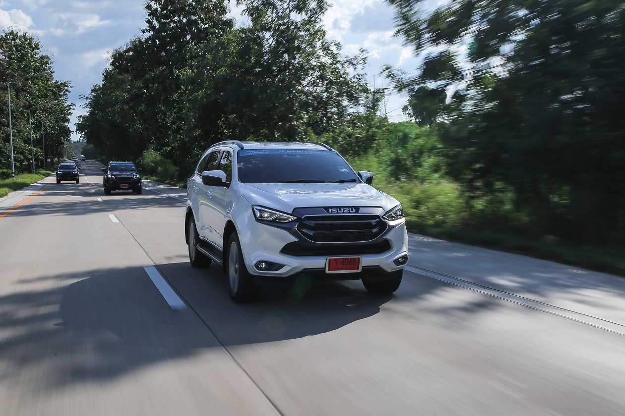 คราวนี้ก็ถึงเวลาที่เราจะได้ทดลองขับ MU-X 1.9 ใหม่กันอย่างจริงจังเป็นระยะทาง 100 กว่า กม. บนเส้นทางลำปาง-เชียงใหม่ ผ่านดอยขุนตาลที่เต็มไปด้วยโค้งโหดๆ ลัดเลาะไปตามเนินเขาสูงต่ำสลับกันไป เรายังคงขับขี่กันเป็นขบวนคาราวานความเร็วที่ในช่วง 80-110 กม./ชม. มิว-เอกซ์ ใหม่ เป็นรถที่ให้ความสะดวกสบายสูง ที่นั่งแบบ 3 แถว รองรับผู้โดยสารได้ถึง 7 ตำแหน่ง การตกแต่งภายในใช้วัสดุที่ดี การให้สีสันเน้นความเรียบหรู แม้ว่ารถรุ่นใหม่นี้จะใช้ขนาดล้อถึง 20 นิ้ว ระบบรองรับปรับเซทมาเน้นความนุ่มนวลแต่ก็ยังคงให้การควบคุมบังคับที่ดีในช่วงความเร็วเดินทางตามกม.กำหนด การขับที่ความเร็วสูงอาจจะต้องใช้สมาธิเพิ่มขึ้นในการควบคุมรถที่ไม่ได้เน้นการขับขี่ใช้งานแบบสปอร์ท แต่เป็นรถที่ขับง่ายแม้ตัวรถจะมีขนาดตัวที่ค่อนข้างใหญ่จาการที่มีตัวช่วยเช่น กล้องมองหลังในขณะถอยจอด การเตือนในขณะเปลี่ยนช่องทางวิ่งเมื่อมีรถขับอยู่ด้านข้างในมุมอับ ระบบเสียงเตือนเมื่อตัวรถขับออกนอกช่องทางวิ่ง การเตือนเมื่อมีผู้ขับหรือผู้โดยสารไม่ได้รัดเข็มขัดนิรภัย ฯลฯ