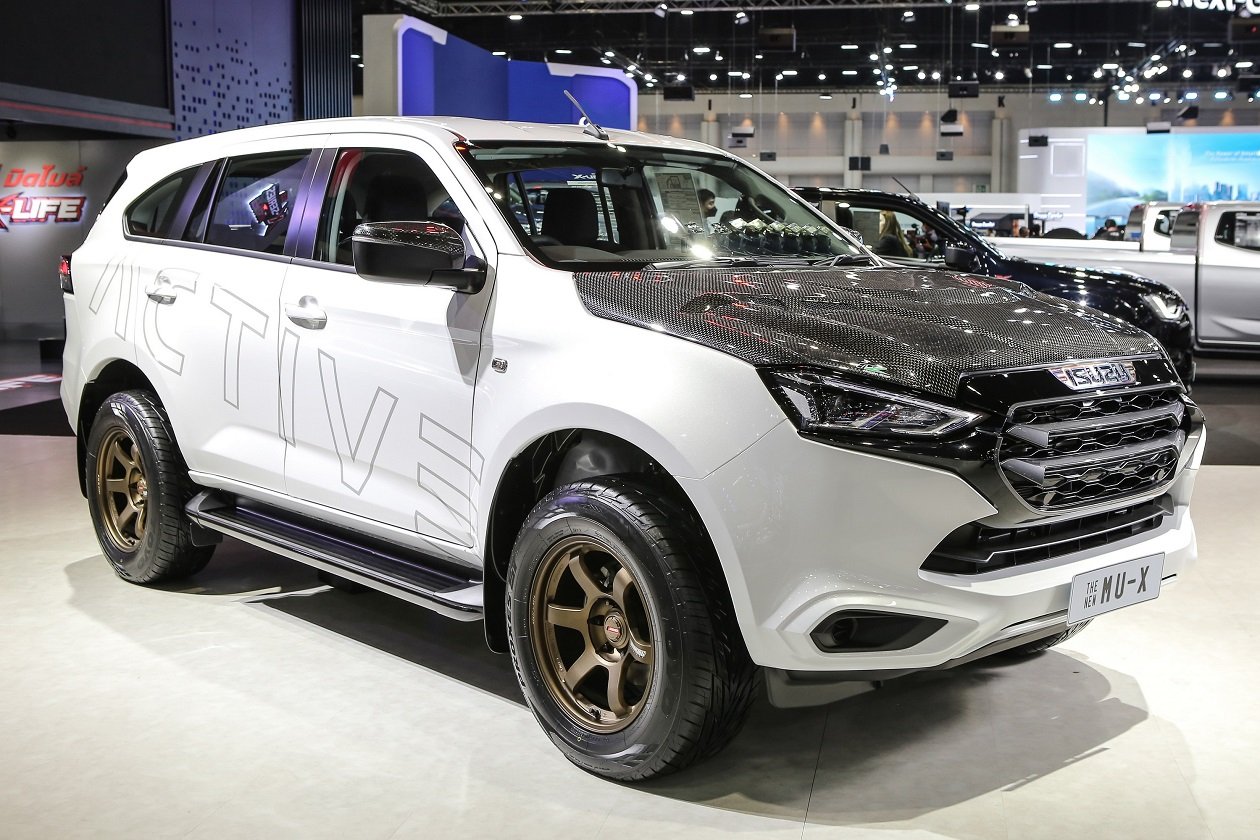เดอะนิว มิว-เอ็กซ์ 1.9 ดีดีไอ บลูเพาเวอร์ รุ่น Active สีขาวมุก (Dolomite White Pearl) เสริมเอกลักษณ์ในสไตล์รถสปอร์ตหรูที่โดนใจคนรุ่นใหม่ ด้วยเทคโนโลยีคาร์บอนไฟเบอร์สุดฮิต ฝากระโปรงหน้า Carbon Composite รุ่น M3 และครอบกระจกมองข้างลาย F1 จาก Monza Factory พร้อมล้อแต่งหล่อ ๆ จากแบรนด์ Rays รุ่น TE37 ProGressive II ก้านโค้งรุ่นใหม่ล่าสุดขนาด 9x18 นิ้ว มาคู่กับยาง Toyo Tires รุ่น Proxes ST ขนาด 265/60R18 ปรับแต่งช่วงล่างให้ขับสนุกและนุ่มนวลยิ่งขึ้น ด้วยโช๊คอัพ Explorer รุ่น RACE Series พร้อมสปริงโหลด 2 นิ้ว เร่งแรงแซงเหนือ สปีดด้วยชุดคันเร่งไฟฟ้า 50 ระดับ ALPHATECH รุ่น Spark 3 และกล่องพ่วงเพิ่มสมรรถนะเครื่องยนต์ ALPHATECH รุ่น Super Storm พร้อม Plug & Play เพิ่มแรงม้าแรงบิดให้มันส์สะใจ คอนโซลหน้าติดตั้งชุดเกจ์มิเตอร์พร้อมขาจับสุดเท่ ชุดแผ่นสแตนเลสดักเข้ากรองอากาศ ชุดล็อกขาตั้งฝากระโปรงหน้า ชุดโลโก้กระจังหน้าสแตนเลส รวมมูลค่าอุปกรณ์ตกแต่งกว่า 250,000 บาท