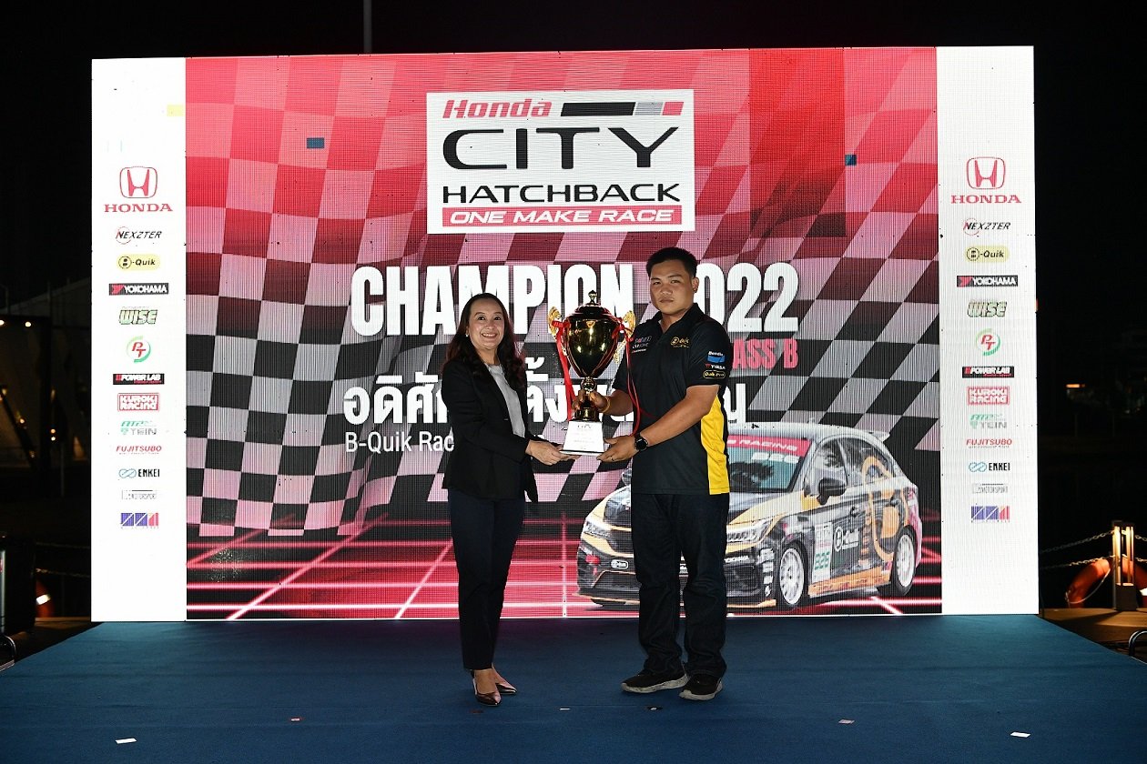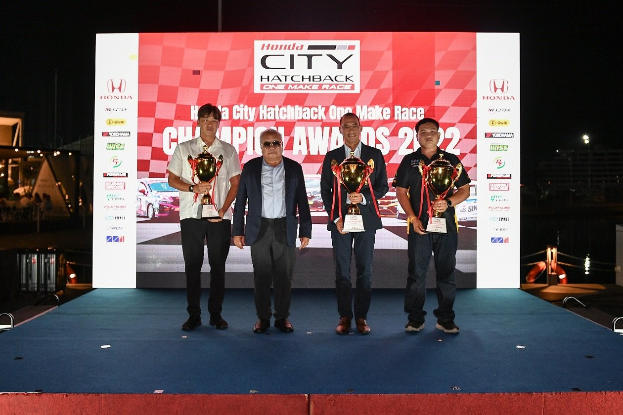 หลังกรำศึกกันมา 4 สนาม ตลอดทั้งปีรวมทั้งสิ้น 8 เรซ โดยเริ่มต้นกันที่ สนามพีระ อินเตอร์เนชั่นแนล เซอร์กิต (พัทยา), สนามช้าง อินเตอร์เนชั่นแนล เซอร์กิต จ.บุรีรัมย์ และ สังเวียนเฉพาะกิจสนามกีฬาเฉลิมพระเกียรติ 80 พรรษา จ.นครราชสีมา ในที่สุดการแข่งขัน “ฮอนด้า ซิตี้ แฮทช์แบ็ก วันเมคเรซ 2022” ก็ได้ผู้ครองบัลลังก์แชมป์ประจำปีในแต่ละรุ่นอย่างเป็นทางการแล้ว โดยในพิธีมอบถ้วยรางวัลอันทรงเกียรตินี้ มีนายอโณทัย เอี่ยมลำเนา ประธานจัดการแข่งขันเป็นประธานในพิธีฯ พร้อมด้วยเหล่าผู้สนับสนุนอย่าง ราชยานยนต์สมาคมแห่งประเทศไทย ในพระบรมราชูปถัมภ์ สมาคมกีฬา (ร.ย.ส.ท.), บริษัท ฮอนด้า ออโตโมบิล (ประเทศไทย) จำกัด, บริษัท เอส.ซี.เอส. อินดัสตรี้ จำกัด, บริษัท บี-ควิก จำกัด, บริษัท โยโกฮามา ไทร์ เซลล์ (ประเทศไทย) จำกัด, บริษัท ริชไวส์มาร์เก็ตติ้ง จำกัด, S63 OIL (Thailand ) CO.,LTD, ATP Tein, Kuroki Racing, Power Lab, HC Motorsport และ M1 Autowerk Thailand
