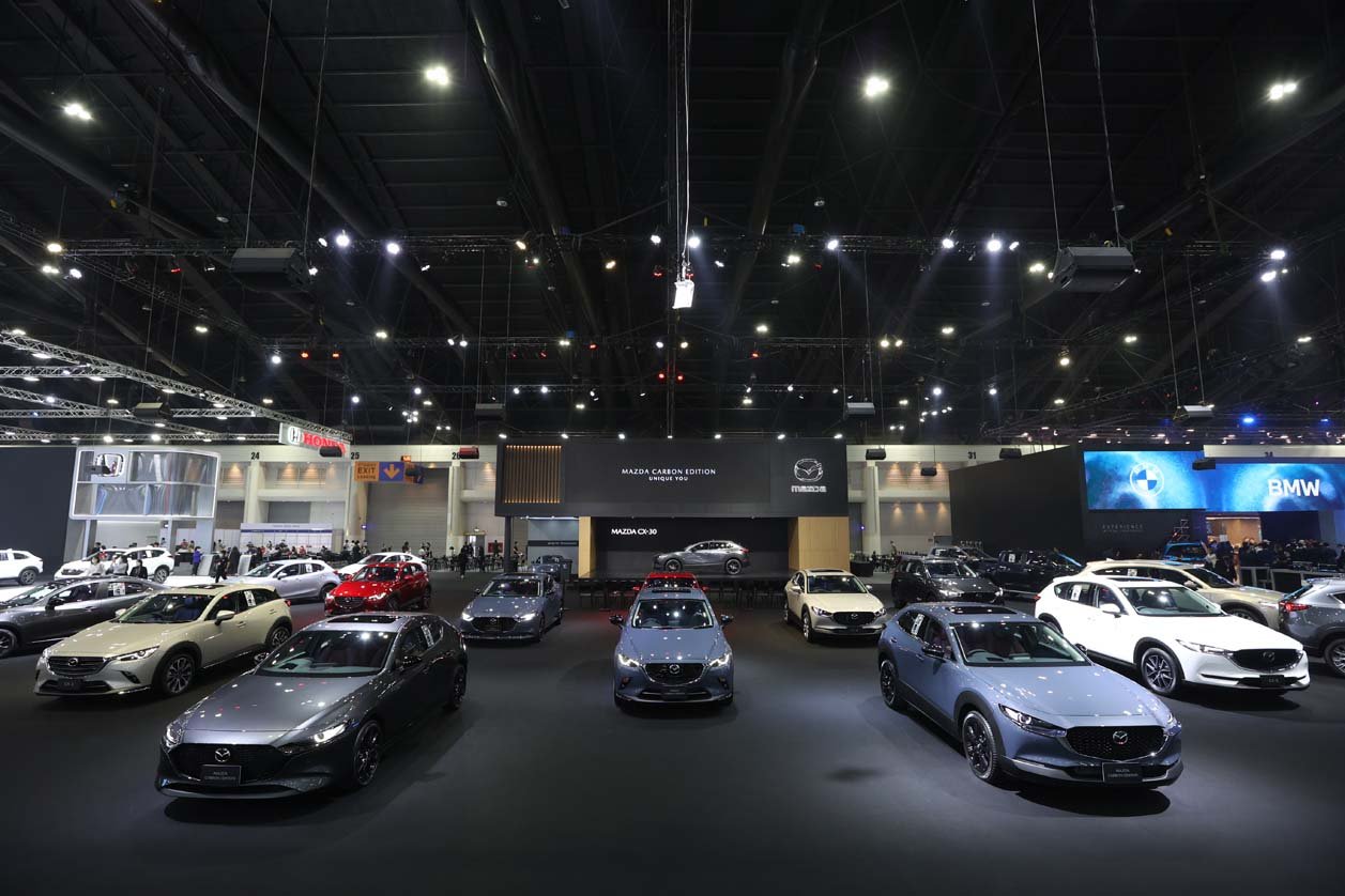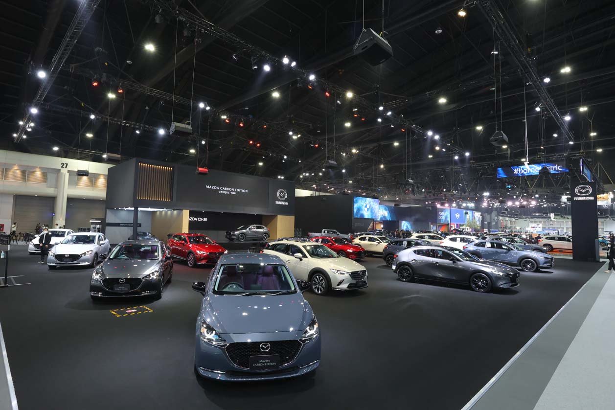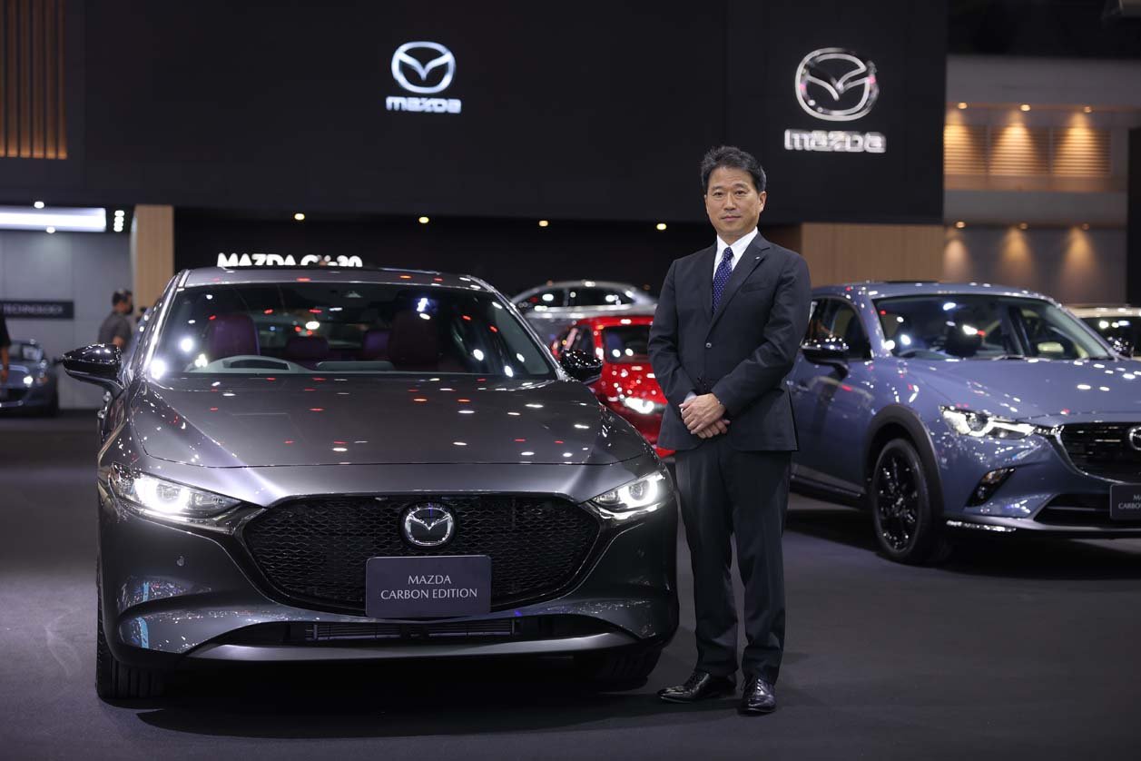 มร. ทาดาชิ มิอุระ ประธานบริหาร บริษัท มาสด้า เซลส์ (ประเทศไทย) จำกัด กล่าวว่า ปีนี้นับว่ามีความสำคัญยิ่งสำหรับมาสด้า เพราะเรากำลังจะก้าวไปสู่การเปลี่ยนแปลงครั้งสำคัญ โดยมาสด้าได้เนรมิตรบูธจัดแสดงที่ถูกออกแบบใหม่ ภายใต้คอนเซ็ปต์ Less is More คือการลดทอนส่วนที่ไม่จำเป็นออกไปคงไว้ซึ่งความสง่างาม เพื่อถ่ายทอดสุนทรียศาสตร์สไตล์ญี่ปุ่นเฉกเช่นผลงานศิลปะอันเลอค่า “Car as Art” ผนวกเข้ากับความสง่างามของการจัดแสดงรถยนต์รุ่นพิเศษ Mazda Carbon Edition ที่นำมาให้ลูกค้าสัมผัสถึง 4 โมเดล 6 รุ่นย่อย รวมถึงการเตรียมความพร้อมรองรับลูกค้าในทุกมิติ โดยมุ่งมั่นในการแสวงหาทุกวิถีทางเพื่อให้ลูกค้ามีความสุข All for Customer และที่สำคัญ คือ ต้องเอาใจใส่ดูแลลูกค้าของเราด้วยการบริการที่เหนือความคาดหวังของลูกค้า งานปีนี้เราไม่ได้ตั้งเป้ายอดขาย หรือ ยอดจองให้ได้มากที่สุด แต่เราอยากให้คนไทยได้เป็นเจ้าของรถยนต์ที่ดีที่สุด เป็นมิตรต่อสิ่งแวดล้อม และรักษาโลกของเราให้คงความสวยงามเพื่อลูกหลานของเราในอนาคต