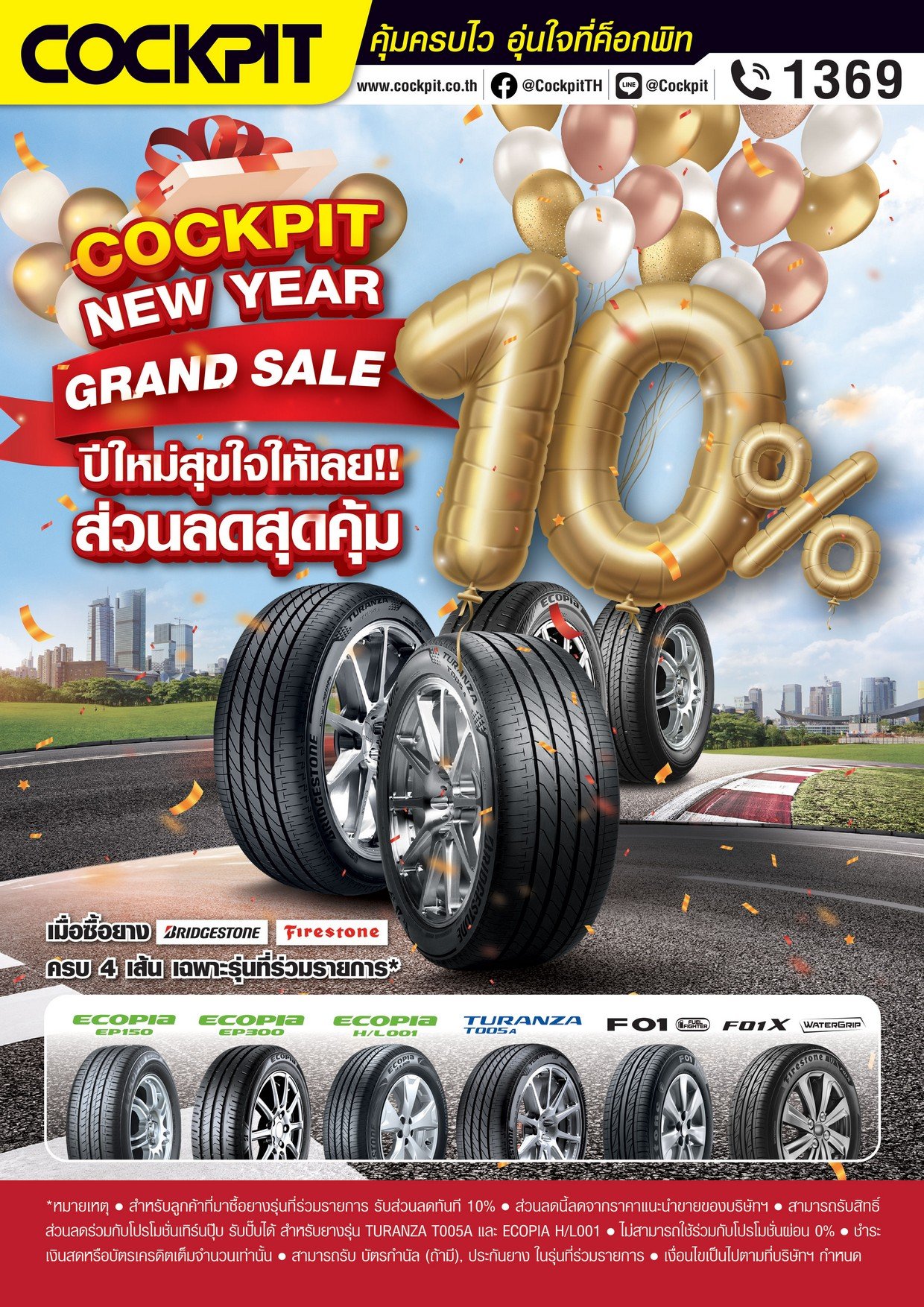 [กรุงเทพฯ] (27 ธันวาคม 2565) – บริษัท บริดจสโตนเซลส์ (ประเทศไทย) จํากัด เดินหน้าขานรับนโยบายภาครัฐเพื่อช่วยลดภาระค่าครองชีพให้ประชาชนช่วงปีใหม่ จับมือกรมการค้าภายใน กระทรวงพาณิชย์ เข้าร่วมโครงการ “พาณิชย์ลดราคา! ช่วยประชาชน Lot 22 New Year Grand Sale 2023” ทั้งนี้บริดจสโตนและค็อกพิทนำเสนอโปรโมชั่นส่วนลดสุดคุ้มเมื่อเปลี่ยนยางรถยนต์ครบ 4 เส้น มอบความสุขใจจัดเต็มตลอดทุกการเดินทางเพื่อเป็นของขวัญให้กับลูกค้าในช่วงเทศกาลส่งท้ายปีเก่าต้อนรับปีใหม่ ตั้งแต่วันที่ 16 ธันวาคม 2565 - 31 มกราคม 2566