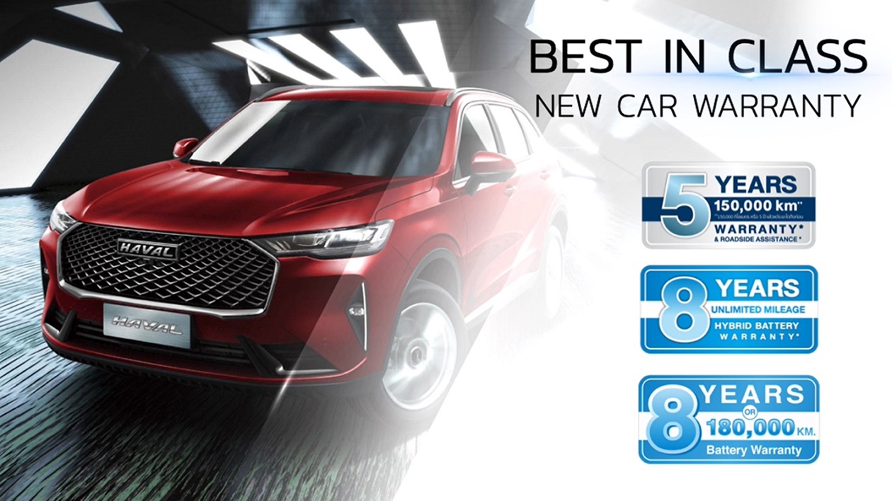 “Worry Free” ขับขี่อย่างไร้กังวลกับการรับประกันคุณภาพรถใหม่ที่เป็น Best-in-class ถึง 5 ปี หรือ 150,000 กิโลเมตร การรับประกันแบตเตอรี่ ฟรี 8 ปี ไม่จำกัดระยะทาง สำหรับแบตเตอรี่ Hybrid และ ฟรี 8 ปี หรือ 180,000 กิโลเมตร สำหรับแบตเตอรี่ EV พร้อมแพ็คเกจการบำรุงรักษาตามระยะทางและบริการช่วยเหลือฉุกเฉินตลอด 24 ชั่วโมง (Roadside Assistant) ตลอดระยะเวลา 5 ปี ที่มาพร้อมกับรถใหม่ทุกคัน นอกจากนี้ เกรท วอลล์ มอเตอร์ ได้จัดตั้ง EV Battery Rapid Team หรือหน่วยงานวิศวกรผู้เชี่ยวชาญเฉพาะด้านเพื่อให้คำแนะนำและตรวจสอบสภาพแบตเตอรี่กรณีรถเกิดอุบัติเหตุ เพื่อให้บริการที่รวดเร็วยิ่งขึ้น พร้อมทั้งได้จัดตั้ง GWM BATTERY HOTLINE CALL CENTER สายด่วนเพื่อรับแจ้งปัญหาเกี่ยวกับแบตเตอรี่และการเคลมโดยให้บริการตลอด 24 ชั่วโมง โทร 02-668-8888 กด 4