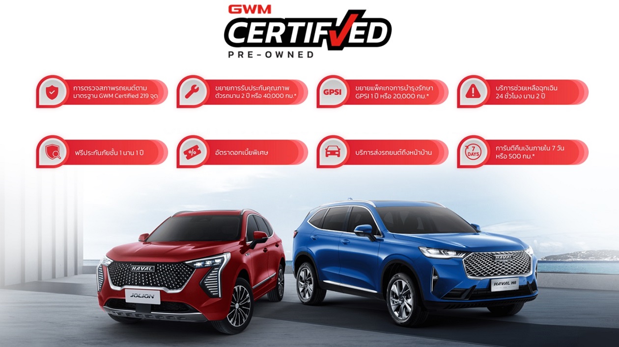 ด้านธุรกิจ Used Car: ในปี 2566 เกรท วอลล์ มอเตอร์ จะเปิดดำเนินการธุรกิจรถใช้แล้ว โดยให้บริการลูกค้าอย่างครบวงจร รองรับลูกค้าที่ต้องการเปลี่ยนรถและลูกค้าที่มองหารถยนต์ใช้แล้วที่มีคุณภาพของ เกรท วอลล์ มอเตอร์ รวมทั้งมีบริการประเมินราคารถใช้แล้วง่ายๆ ผ่านทางเว็บไซต์ WWW.GWM.CO.TH โดยมาตรฐานรถใช้แล้วของ GWM Certified Pre-Owned ประกอบไปด้วย 4 ส่วน คือ การตรวจสอบคุณภาพตามมาตรฐาน 219 จุด อายุรถไม่เกิน 5 ปี เลขไมล์ไม่เกิน 150,000 กิโลเมตร ไม่มีประวัติน้ำท่วม ไฟไหม้ และไม่มีประวัติชนหนัก ซึ่งมาพร้อมกับสิทธิประโยชน์มากมาย อาทิ