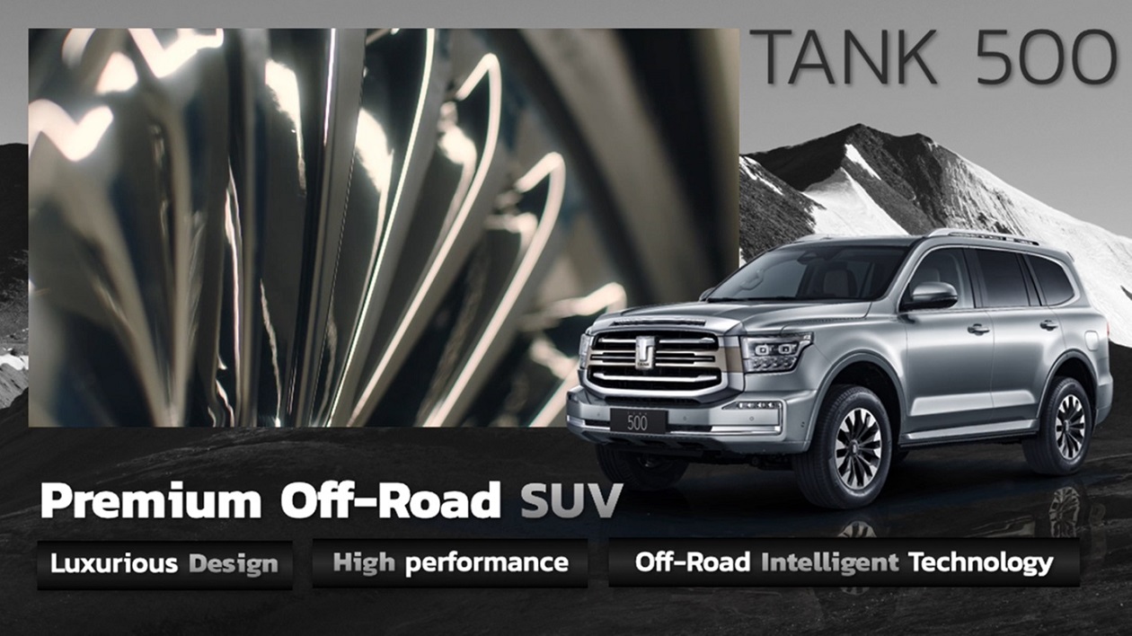 TANK 500 รถยนต์เอสยูวีออฟโรดขนาดใหญ่ระดับพรีเมียม ดีไซน์หรูหรา สมรรถนะการขับขี่ทรงพลัง มาพร้อมเทคโนโลยีการขับขี่ออฟโรดอัจฉริยะ ที่จะยกระดับการขับขี่และภาพลักษณ์อันหรูหราเหนือระดับ