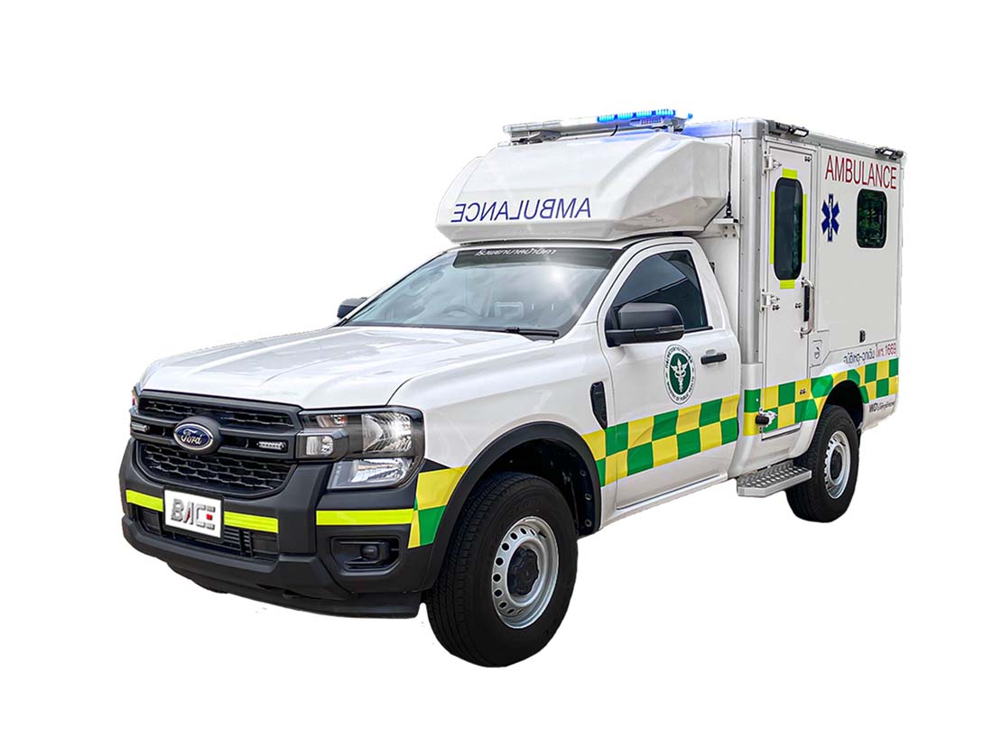 รถพยาบาล พัฒนามาจากรถกระบะฟอร์ด เรนเจอร์ เจเนอเรชันใหม่ มาพร้อมอุปกรณ์การแพทย์ ตามข้อกำหนดของสถาบันการแพทย์ฉุกเฉินแห่งชาติ