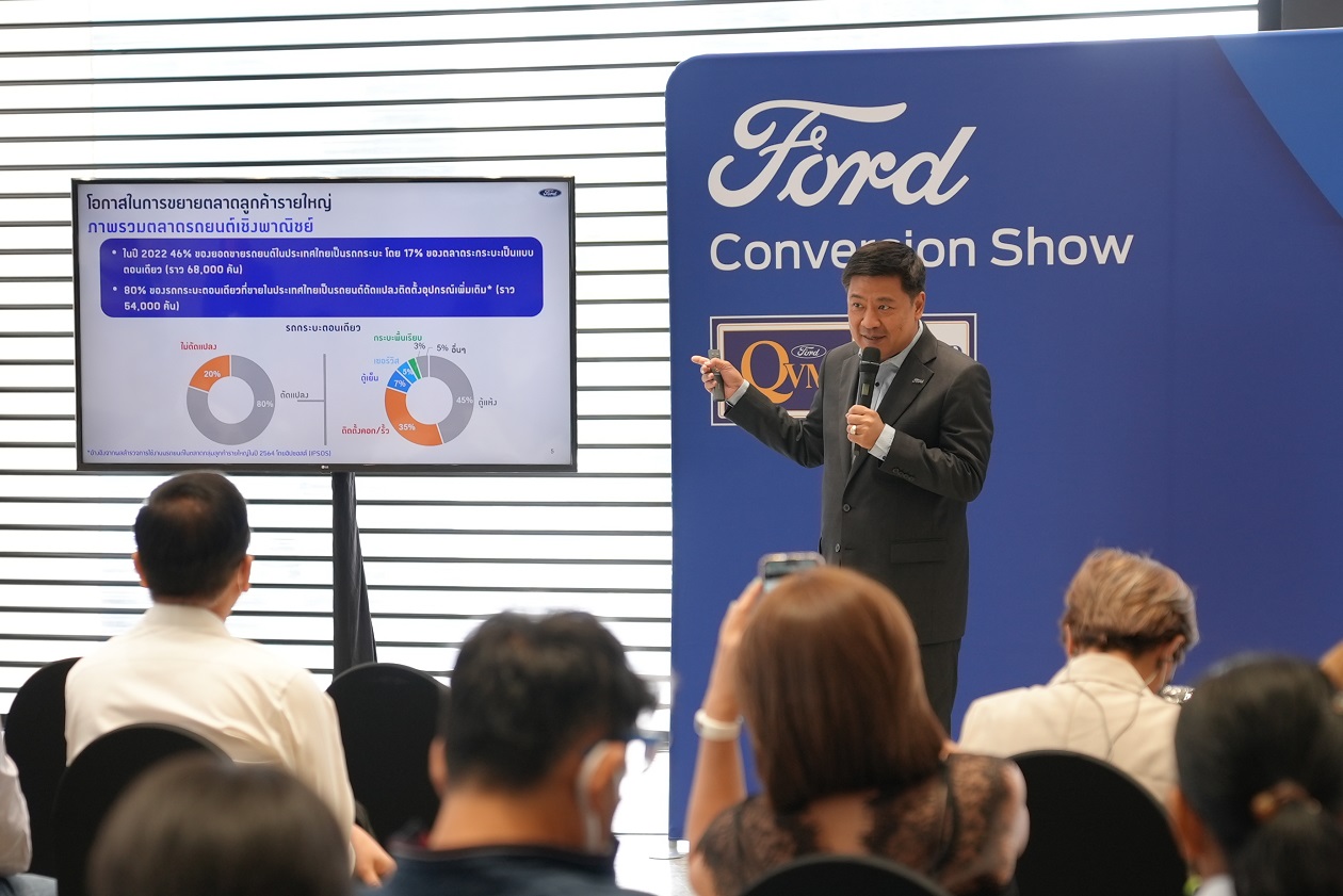 ฟอร์ด ประเทศไทย ประกาศกลยุทธ์รุกตลาดลูกค้ารายใหญ่ด้วยรถยนต์ฟอร์ดดัดแปลงเพื่อผลักดันธุรกิจให้เติบโตต่อเนื่อง ชูความแตกต่างด้วยการต่อยอดจุดแข็งของรถยนต์ฟอร์ดที่โดดเด่นด้วยสมรรถนะ และความอเนกประสงค์ครบครันตั้งแต่รุ่นเริ่มต้น ผนวกกับการยกระดับมาตรฐานรถดัดแปลงด้วยโปรแกรม Qualified Vehicle Modifier (QVM) ของฟอร์ด พร้อมนำเสนอโซลูชันพิเศษสำหรับกลุ่มลูกค้ารายใหญ่ พร้อมอำนวยความสะดวกลูกค้าด้วยนวัตกรรมด้านบริการของฟอร์ด โดยในงาน Ford Conversion Show ได้นำตัวอย่างรถยนต์ฟอร์ดดัดแปลงเพื่อการพาณิชย์ อาทิ รถตู้เย็น รถพยาบาลฉุกเฉิน รถกระเช้า รถจัดส่งสินค้า รถบริการเคลื่อนที่ ที่ผ่านการออกแบบและพัฒนาโดยพันธมิตรที่ผ่านการรับรองภายใต้โปรแกรม QVM อย่างบริษัท อาร์เอ็มเอ ออโตโมทีฟ จำกัด และบริษัท เอสเอสเอส ออโตโมทีฟ อินดัสทรี จำกัด มาจัดแสดง ณ ศูนย์การเรียนรู้และฝึกอบรมบุคลากรฟอร์ด