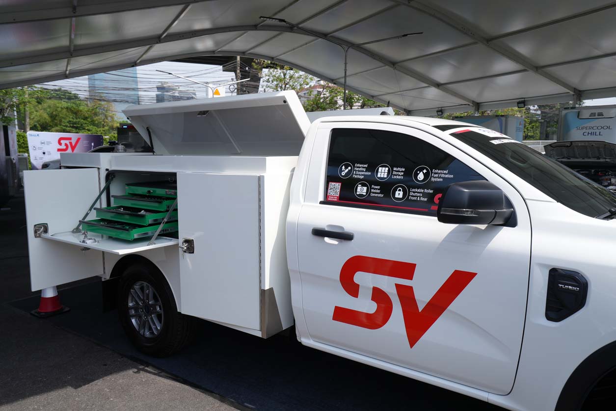 รถให้บริการเคลื่อนที่อเนกประสงค์ (Mobile maintenance - MMT Box) ดัดแปลงโดยใช้รถกระบะฟอร์ด เรนเจอร์ เจเนอเรชันใหม่ รุ่นสแตนดาร์ดแค็บ 4x4 มาพร้อมพื้นที่จัดเก็บอุปกรณ์ ถังเก็บน้ำมันและถังเก็บน้ำ