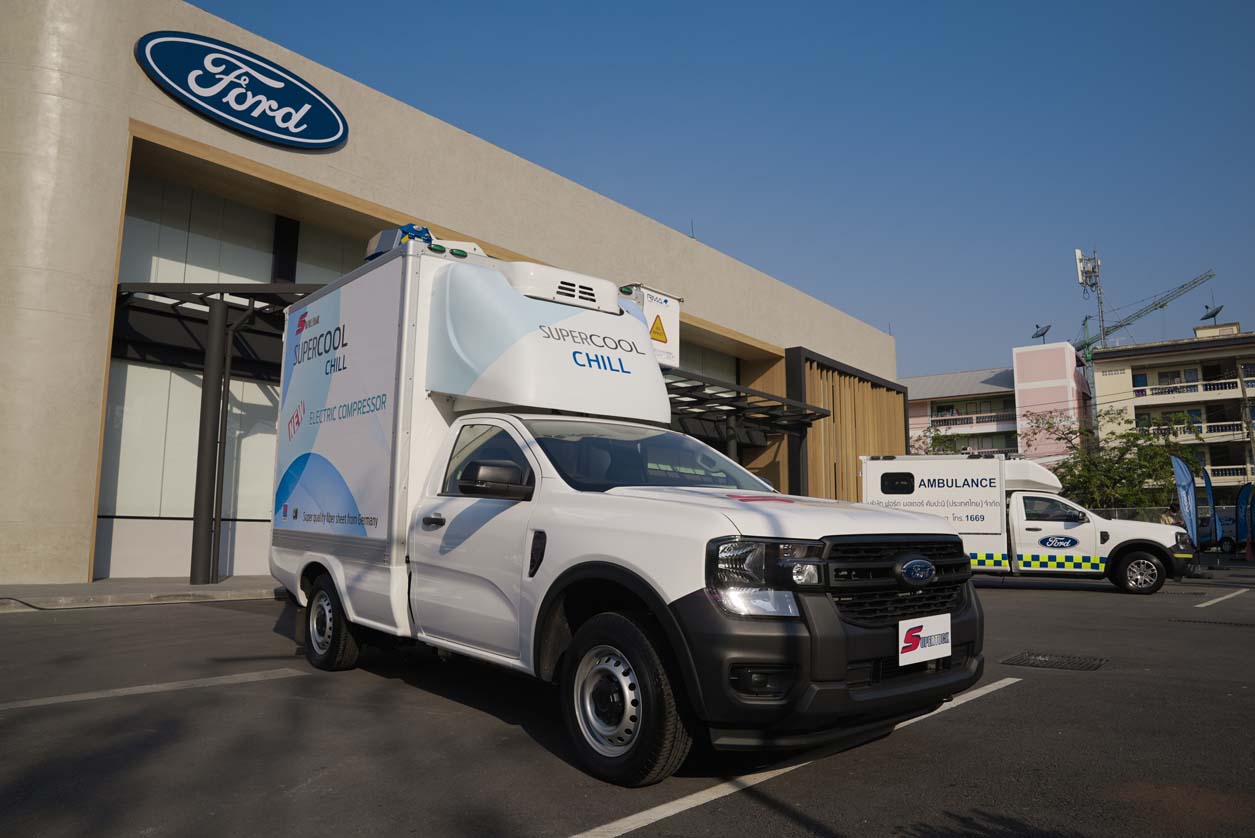 รถตู้เย็น ดัดแปลงโดยใช้รถกระบะฟอร์ด เรนเจอร์ เจเนอเรชันใหม่ รุ่นสแตนดาร์ดแค็บ และใช้คอมเพรสเซอร์ที่ใช้พลังงานขับเคลื่อนจากเครื่องยนต์ (engine-driven compressor)