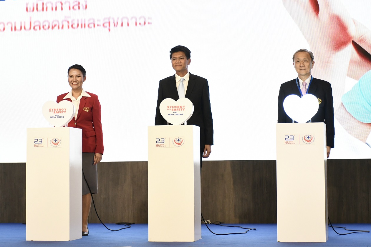 ด้าน พญ.ปิยวรรณ ลิ้มปัญญาเลิศ ผู้อำนวยการสถาบันรับรองคุณภาพสถานพยาบาลฯ กล่าวว่า การประชุมวิชาการประจำปี HA National Forum ครั้งที่ 23 สถาบันฯ เป็นองค์กรกลางในการจัดเวทีสร้างความร่วมมือกับทุกภาคส่วน เพื่อสร้างแรงบันดาลใจให้สถานพยาบาลเกิดการพัฒนาคุณภาพอย่างต่อเนื่อง รวมถึงเผยแพร่ผลงานวิชาการที่น่าชื่นชม ผู้เข้าร่วมประชุมมีโอกาสแลกเปลี่ยนเรียนรู้เกี่ยวกับการพัฒนาคุณภาพในมิติต่างๆ และนำความรู้ที่ได้ไปประยุกต์ใช้ พัฒนานวัตกรรมใหม่ๆ ให้ประชาชนได้รับบริการที่มีคุณภาพยิ่งขึ้น เจ้าหน้าที่มีความสุข ระบบบริการสุขภาพเกิดความยั่งยืน โดยสถานพยาบาลที่ผ่านการรับรองกระบวนการคุณภาพมาตรฐาน HA จำนวน 405 แห่ง ประกอบด้วย สถานพยาบาลผ่านการรับรองขั้นก้าวหน้า 3 แห่ง และต่ออายุการรับรองขั้นก้าวหน้า 5 แห่ง สถานพยาบาลผ่านการรับรองครั้งแรก 26 แห่ง และต่ออายุการรับรอง 339 แห่ง สถานพยาบาลผ่านการต่ออายุการรับรองและผ่านการรับรองตามมาตรฐานระบบสุขภาพระดับอำเภอ 22 เครือข่าย ศูนย์บริการสาธารณสุขผ่านการรับรองตามมาตรฐานกระบวนการคุณภาพ 1 แห่ง และผ่านการต่ออายุการรับรอง 9 แห่ง