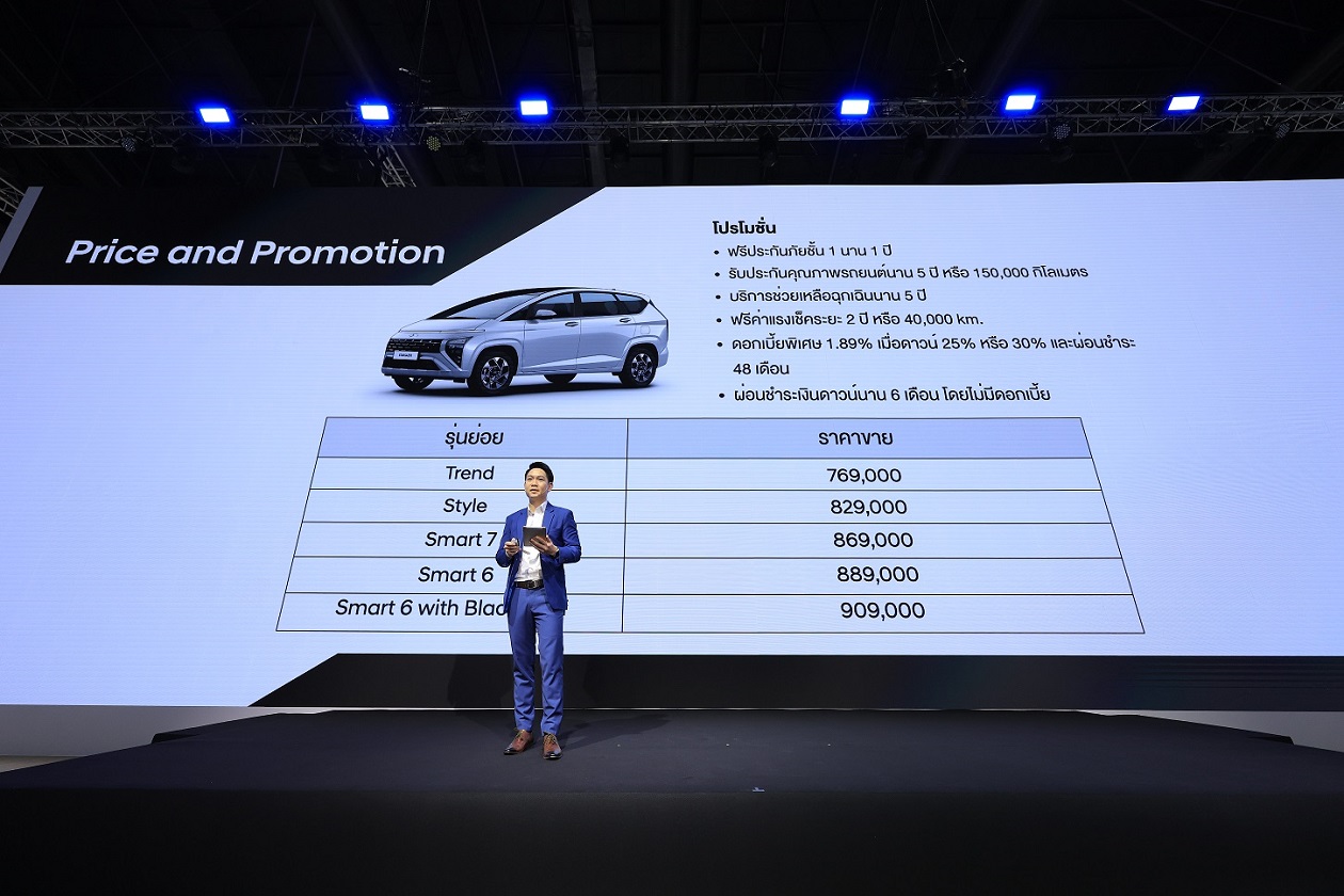 นายเจ กิว จอง ประธานเจ้าหน้าที่บริหาร บริษัท ฮุนได โมบิลิตี้ (ประเทศไทย) จำกัด กล่าวว่า ฮุนได โมบิลิตี้เล็งเห็นถึงความสำคัญของประเทศไทย ในฐานะตลาดที่สำคัญของรถยนต์อเนกประสงค์ขนาดเล็ก (มินิเอ็มพีวี) ซึ่งมีศักยภาพในการเติบโตอย่างต่อเนื่อง ตอบโจทย์ลูกค้าที่กำลังมองหารถยนต์ที่สามารถเข้าถึงไลฟ์สไตล์ครอบคลุมทุกมิติ พร้อมด้วยฟังก์ชันการใช้งานที่เหนือกว่ารถยนต์ทั่วไป ในปีนี้ ฮุนได โมบิลิตี้ (ประเทศไทย) จึงได้เปิดตัวรถยนต์รุ่น "ฮุนได สตาร์เกเซอร์" เป็นครั้งแรก ซึ่งเป็นอีกก้าวสำคัญทั้งในด้านการบริหารและการทำตลาดโดยฮุนได โมบิลิตี้ (ประเทศไทย) พร้อมด้วยการนำเสนอเทคโนโลยีความปลอดภัยขั้นสูงของรถมินิเอ็มพีวีอเนกประสงค์ขนาด 6 และ7 ที่นั่ง ครบครันทั้งการขับขี่ การออกแบบที่คำนึงถึงความสบายที่สุดของทุกที่นั่ง พร้อมด้วยสมรรถนะและนวัตกรรมภายใต้มาตรฐานอันล้ำสมัย ในราคาที่พร้อมแข่งขัน กับผู้เล่นอื่นในตลาดแน่นอน