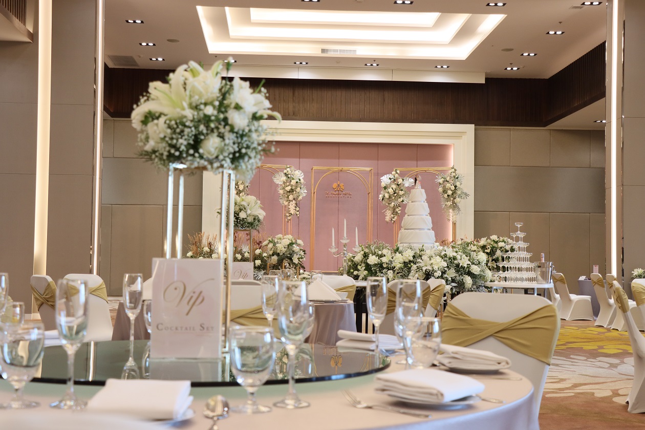 โรงแรม ทีเค พาเลซ แอนด์ คอนเวนชั่น ขอต้อนรับคู่รักและผู้ที่สนใจ เข้าร่วมงาน Wedding Showcase ครั้งที่ 6 ภายใต้ธีม “แต่งงานกับเรา” โดยการจัดงานครั้งนี้ ได้เนรมิตรูปแบบงานแต่งงานทุกขั้นตอน เริ่มตั้งแต่พิธีสงฆ์ พิธีสู่ขอ พิธีหมั้น พิธีหลั่งน้ำพระพุทธมนต์ รวมทั้งรูปแบบการจัดการฉลองมงคลสมรส ไอเดียการจัดซุ้มงานแต่ง การตกแต่งโต๊ะอาหารในรูปแบบ โต๊ะจีน บุฟเฟ่ต์ ค็อกเทล นอกจากนี้ภายในงานทางโรงแรม รังสรรค์เมนูอาหารที่ได้รับความนิยมในงานแต่ง มาให้ผู้เข้าร่วมงานลิ้มรส ในรูปแบบซุ้ม และ คอกเทล