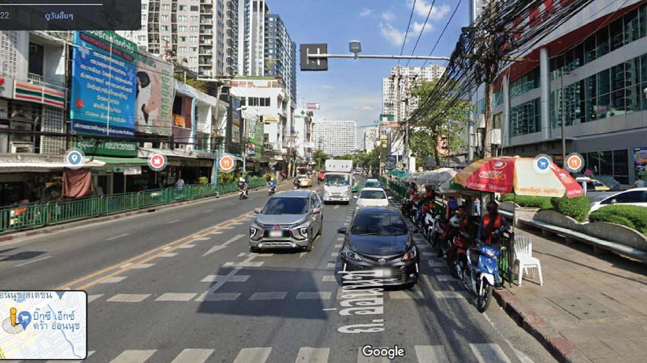 ข้อเสนอแนะสำหรับพื้นที่อ่อนนุช (ซ้าย) การติดตั้งสัญญาณไฟที่บริเวณทางม้าลาย (ขวา) หาจุดจอดที่เหมาะสมสำหรับวินมอเตอร์ไซด์