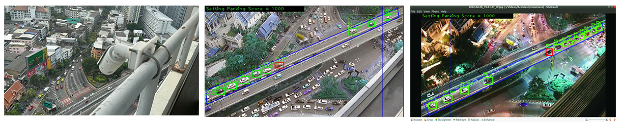 การติดตั้งกล้องวงจรปิดบริเวณสะพานไทย-ญี่ปุ่น ถนนพระราม 4 และภาพการตรวจจับอุบัติการณ์ด้วยกล้อง CCTV-AI