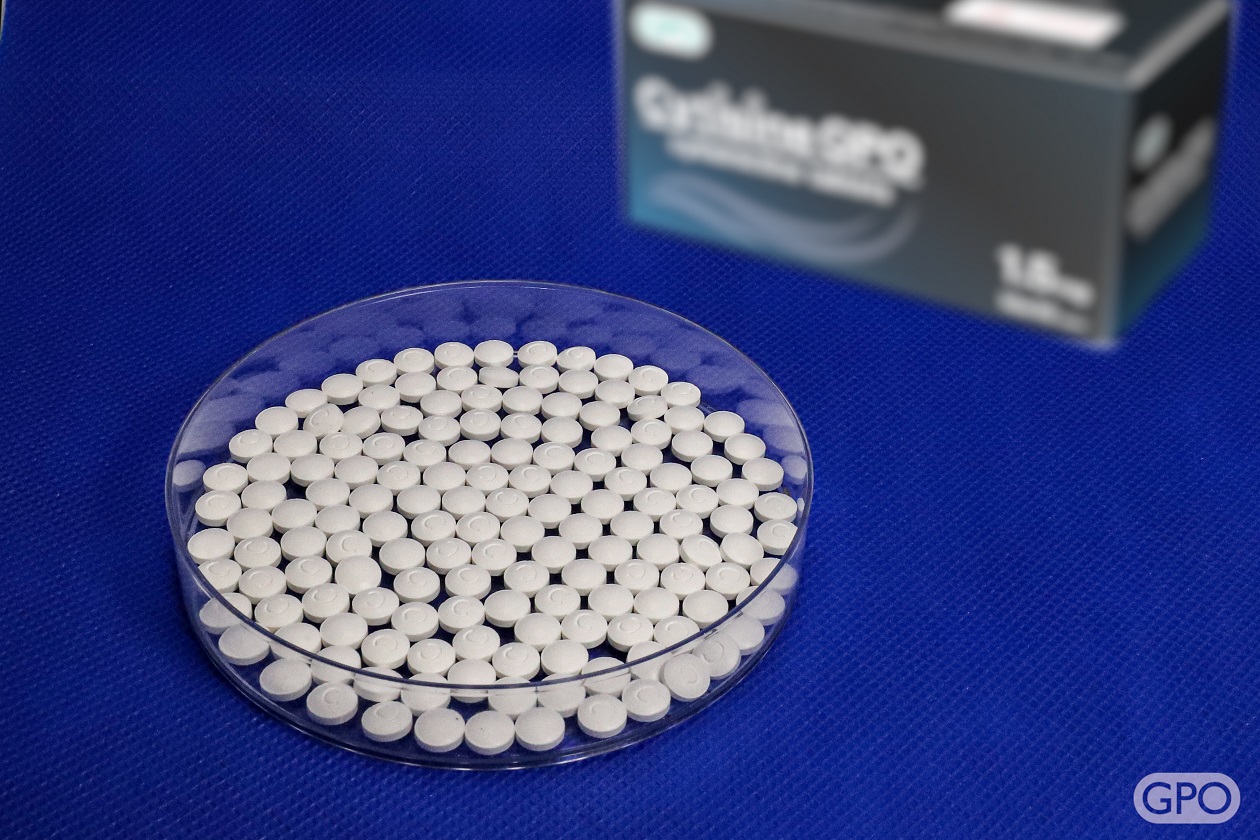 องค์การเภสัชกรรม ได้วิจัยและพัฒนายาเลิกสูบบุหรี่ชนิดใหม่ คือ ยาเม็ด ไซทิซิน จีพีโอ (1.5 มิลลิกรัม) เป็นรายแรกในประเทศไทย สำหรับยาเม็ดไซทิซิน จีพีโอ โดยองค์การเภสัชกรรม ร่วมมือกับ คณะแพทยศาสตร์ มหาวิทยาลัยศรีนครินทรวิโรฒ ศึกษาวิจัยทางคลินิกในมนุษย์ ผลการวิจัยมีความปลอดภัย และมีประสิทธิผลดี ซึ่งอยู่ระหว่างการขออนุมัติทะเบียนจากสำนักงานคณะกรรมการอาหารและยา (อย.) ประเภทยาควบคุมพิเศษ ที่จำหน่ายได้ในสถานพยาบาลเท่านั้น