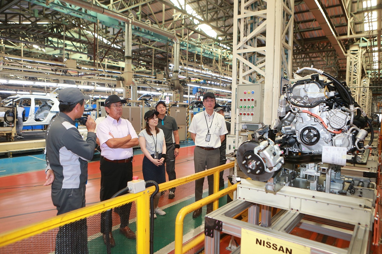 ฯพณฯ นายนาชิดะ คาซูยะ เอกอัครราชทูตญี่ปุ่นประจำประเทศไทย ร่วมเข้าชมโรงงานฐานการผลิต โดยมี อิซาโอะ เซคิกุจิ ประธานนิสสัน ประเทศไทย และประธานนิสสัน อาเซียน รวมทั้งผู้บริหาร และพนักงาน นิสสันให้การต้อนรับ