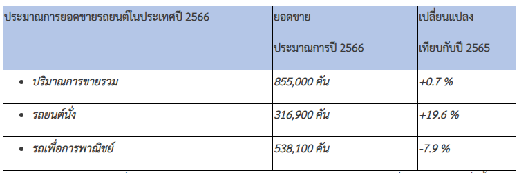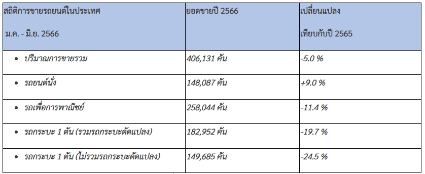 สถิติการจำหน่ายรถยนต์ เดือนมกราคม – มิถุนายน 2566