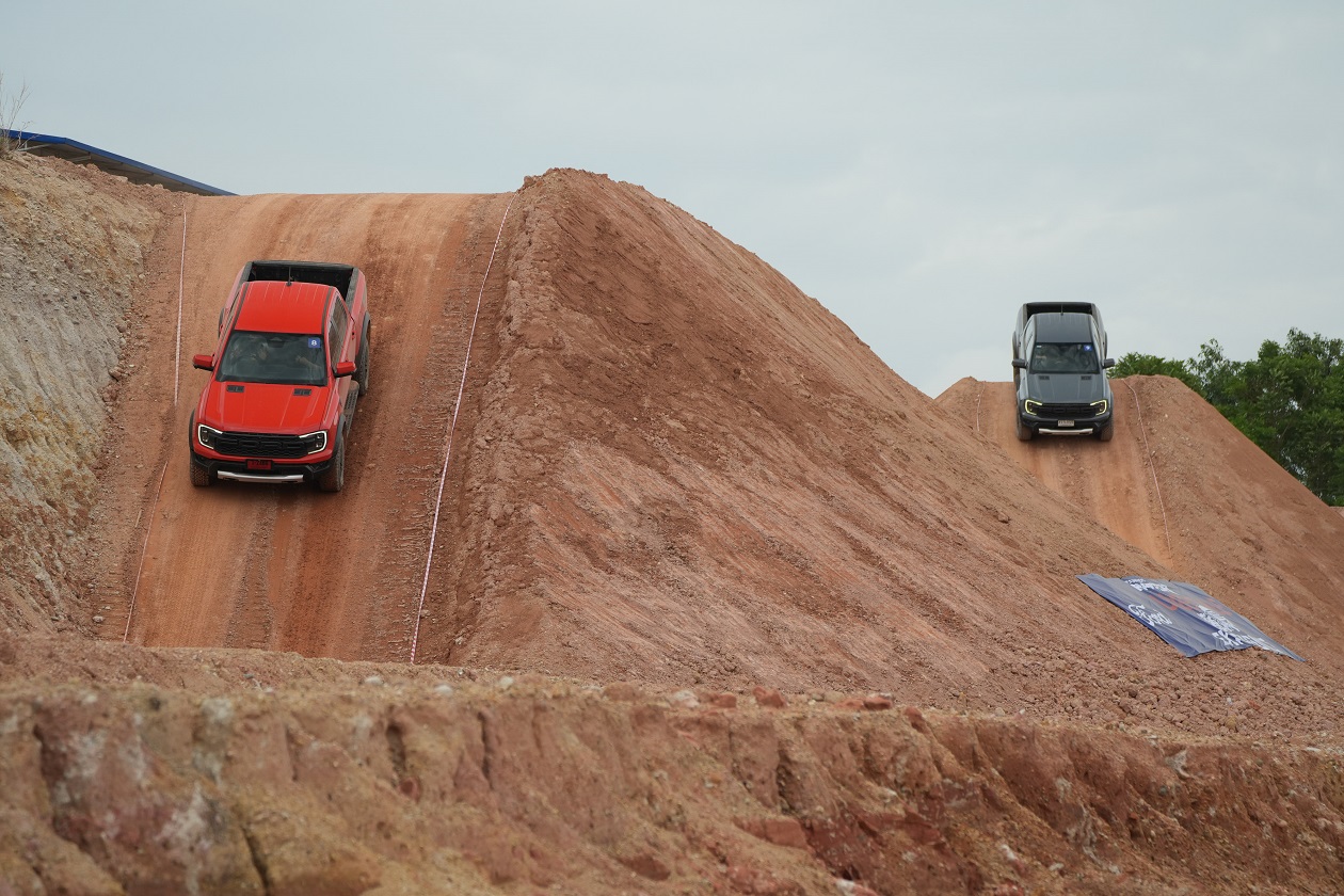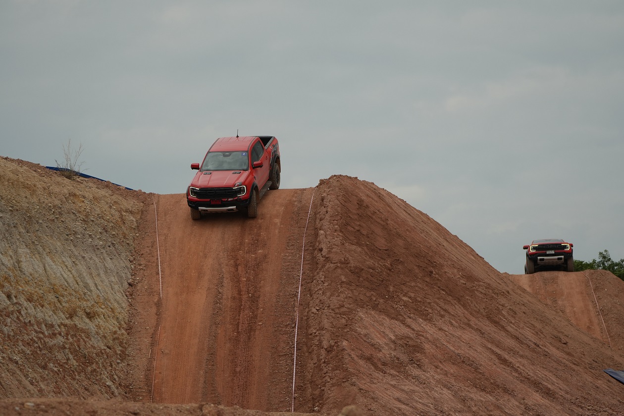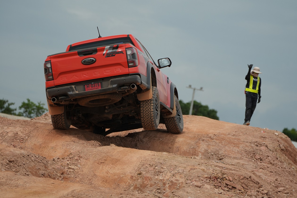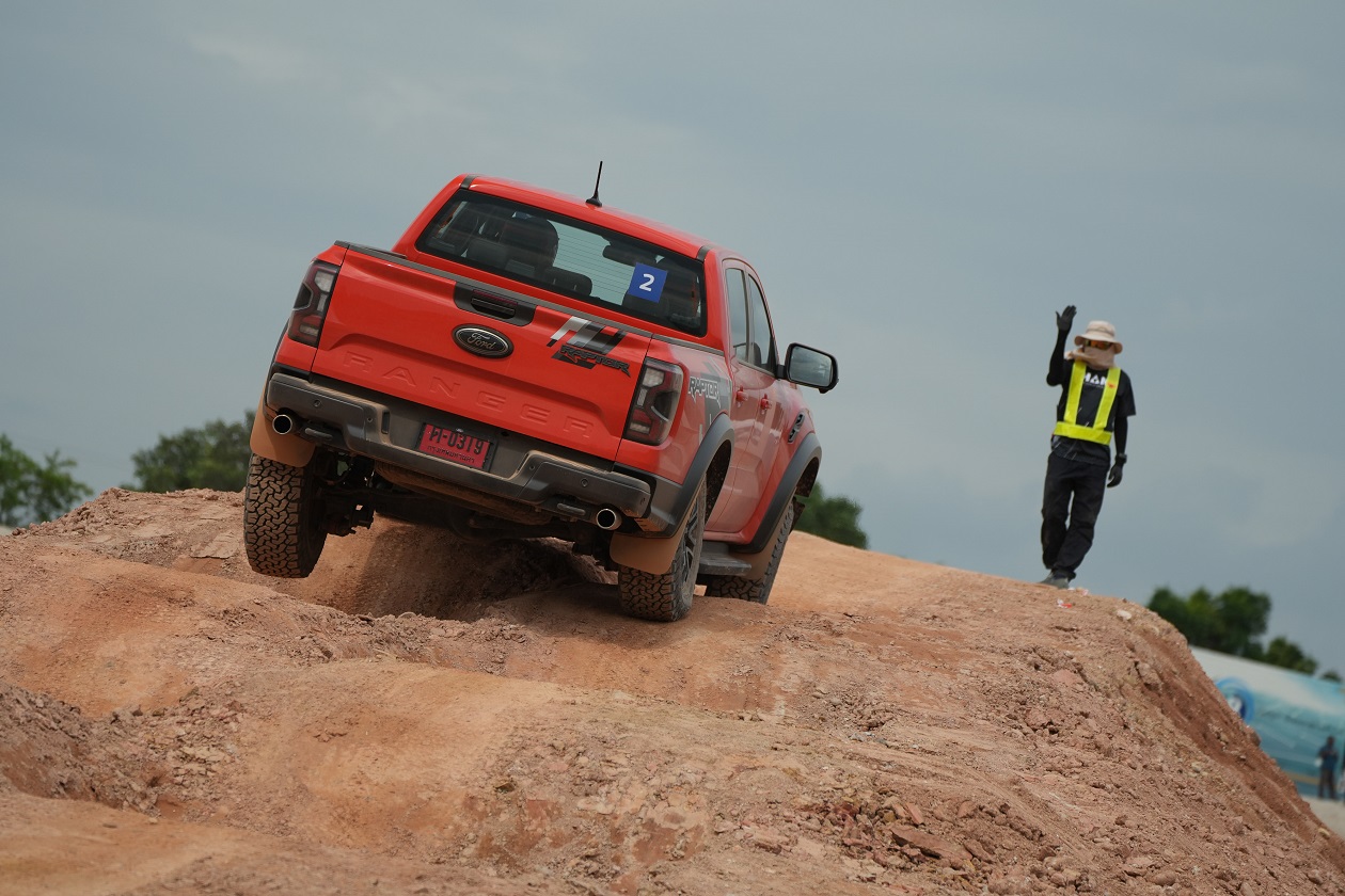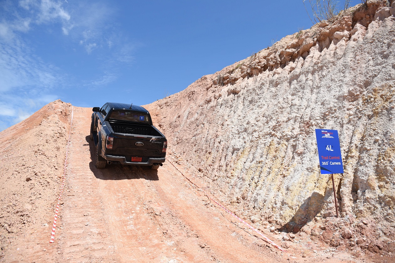 กิจกรรมในครั้งนี้ทีมงานได้ควบเจ้า แร็พเตอร์ เครื่องยนต์เบ็นซิน V6 แรงสะใจ..ความตื่นเต้นเมื่อเห็นเนินสูง 38 องศา สูงระดับตึก 4 ชั้น โดยเนินลูกแรกให้ผู้ขับขี่ได้ลองปรับโหมดระบบขับเคลื่อนมาใช้เกียร์ 4 Low พร้อมกับการขับขี่โดยมองผ่านกล้อง 360 องศา ซึ่งพละกำลังของเครื่องยนต์ในจังหวะแตะคันเร่งเพื่อส่งให้ตัวรถขึ้นสู่ยอดเนินนั่นในรอบเครื่องต่ำๆ เพียง “พันกว่ารอบ” กล้อง 360 องศา ให้มุมมองที่ชัดเจน ทำให้ผู้ขับขี่ไม่เครียดมาก และขาลงในเนินลูกแรก ก็ให้ทางผู้ขับขี่สร้างความคุ้นเคยกับการคอนโทรลน้ำหนักของแป้นเบรค ด้วยการคอนโทรลเบรคให้รถไหลลงเนินด้วยความสมูท แลปลอดภัย นับเป็นทักษะที่จำเป็นสำหรับการขับขี่ในรูปแบบออฟโร๊ดโดยแท้จริง