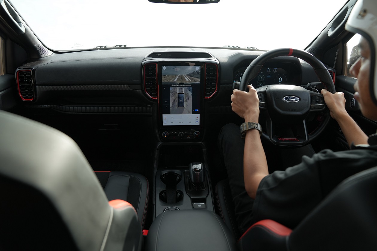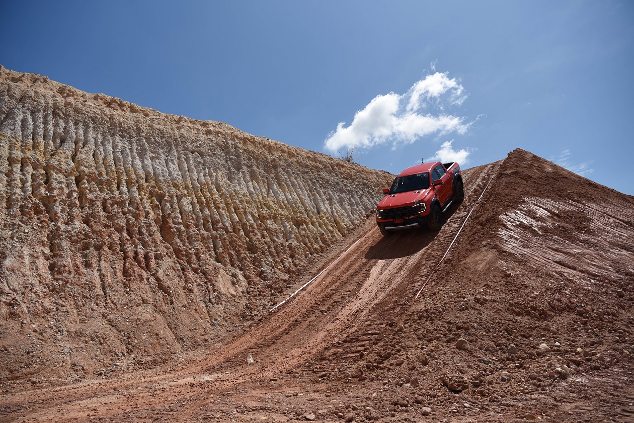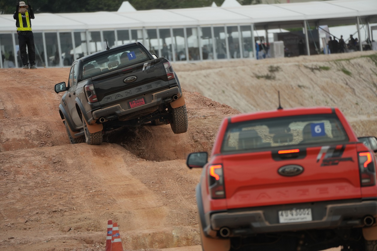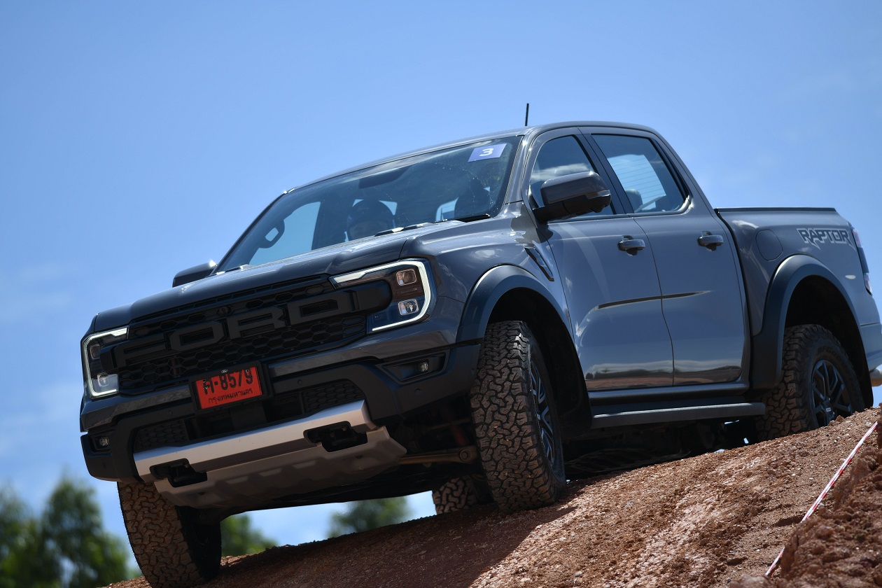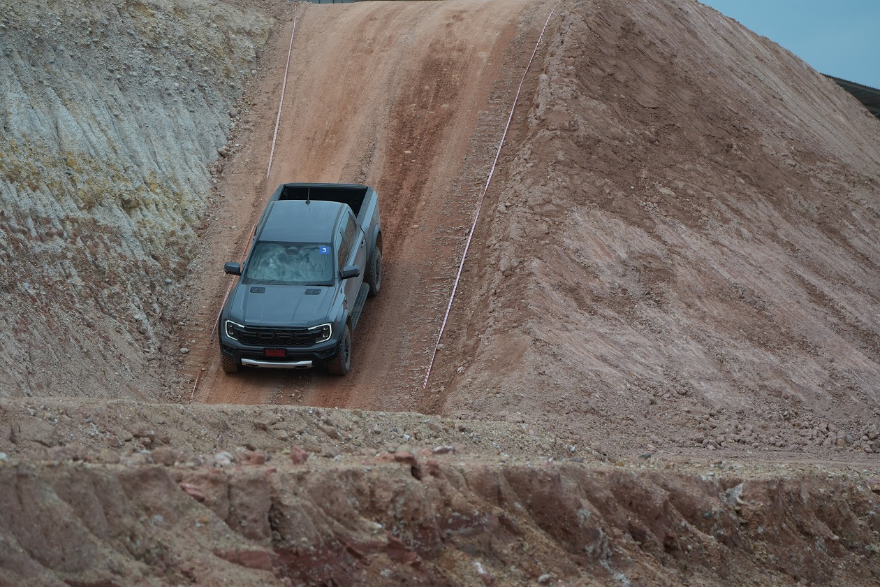 กิจกรรมในครั้งนี้ทีมงานได้ควบเจ้า แร็พเตอร์ เครื่องยนต์เบ็นซิน V6 แรงสะใจ..ความตื่นเต้นเมื่อเห็นเนินสูง 38 องศา สูงระดับตึก 4 ชั้น โดยเนินลูกแรกให้ผู้ขับขี่ได้ลองปรับโหมดระบบขับเคลื่อนมาใช้เกียร์ 4 Low พร้อมกับการขับขี่โดยมองผ่านกล้อง 360 องศา ซึ่งพละกำลังของเครื่องยนต์ในจังหวะแตะคันเร่งเพื่อส่งให้ตัวรถขึ้นสู่ยอดเนินนั่นในรอบเครื่องต่ำๆ เพียง “พันกว่ารอบ” กล้อง 360 องศา ให้มุมมองที่ชัดเจน ทำให้ผู้ขับขี่ไม่เครียดมาก และขาลงในเนินลูกแรก ก็ให้ทางผู้ขับขี่สร้างความคุ้นเคยกับการคอนโทรลน้ำหนักของแป้นเบรค ด้วยการคอนโทรลเบรคให้รถไหลลงเนินด้วยความสมูท แลปลอดภัย นับเป็นทักษะที่จำเป็นสำหรับการขับขี่ในรูปแบบออฟโร๊ดโดยแท้จริง