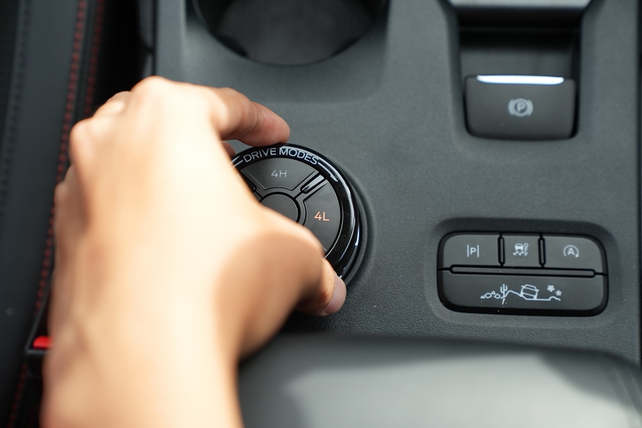 สถานีที่ 4 เป็นเส้นทางลักษณะเป็นหลุมสลับค่อนข้างลึก และเป็นการไต่ขึ้นเนินไปในตัว โดยในสถานีนี้เราได้เลือกระบบขับเคลื่อน 4 Low และเพิ่มระบบช่วยในการขับขี่ Drive Mode โดยการหมุนปุ่มวงแหวนไปที่โหมด “ไต่ร่องหิน” ซึ่งโหมดนี้จะสั่งให้กล่อง ECU เพิ่มระบบ Rear Diff Lock ให้เองโดยอัตโนมัติ แต่กับสภาพเส้นทางที่โหดมากๆ แร็พเตอร์ V6 ยังมีหมัดเด็ดที่ในตัว แร็พเตอร์ ดีเซล และกระบะ 4 WD ยี่ห้ออื่นในบ้านเราไม่มีก็คือ Front Diff Lock