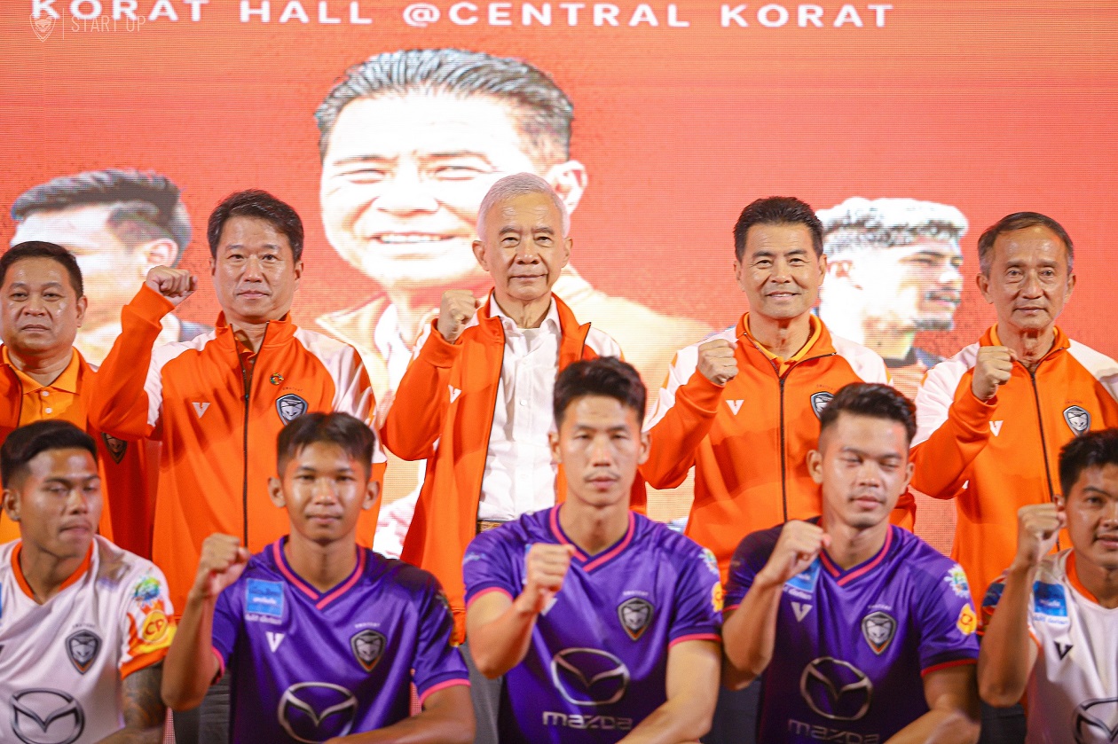 ทางด้านผู้สนับสนุนหลักอย่างเป็นทางการ มร. ทาดาชิ มิอุระ ประธานบริหาร บริษัท มาสด้า เซลส์ (ประเทศไทย) จำกัด กล่าวว่า มาสด้าให้ความสำคัญอย่างยิ่งต่อการพัฒนาวงการฟุตบอลไทย ด้วยการเข้ามาสนับสนุนฟุตบอลทีมสวาทแคท หรือ นครราชสีมา มาสด้า เอฟซี เมื่อ 11 ปีที่แล้ว ส่งผลให้วงการฟุตบอลไทยคึกคักทันตาเห็น โดยเฉพาะจำนวนแฟนบอลที่หลั่งไหลเข้าชมการแข่งขัน วันนี้ทีมสวาทแคทยังคงครองสถิติอันดับหนึ่งที่มีผู้เข้าชมมากที่สุดในไทยลีก ที่สำคัญ มาสด้ายังคงให้การสนับสนุนทีมสวาทแคทอย่างต่อเนื่องเช่นเดียวกับทุกปีที่ผ่านมา วันนี้ทุกคนต้องร่วมแรงร่วมใจกันลุกขึ้นสู้อีกครั้ง เพื่อก้าวขึ้นสู่ลีกสูงสุดของประเทศให้เร็วที่สุด ทุกคนต้องศรัทธาและเชื่อมั่นในสปิริตความเป็นนักสู้ของทีม ซึ่งมี DNA เช่นเดียวกับชาวมาสด้า เราไม่เคยยอมแพ้ต่ออุปสรรค เราเชื่อมั่นในสปิริตความเป็นนักสู้ เราฝ่าฟันอุปสรรคต่างๆ มามากมายกว่า 100 ปี และอยู่เคียงข้างคนไทยมา 73 ปี และเราจะยังคงอยู่เคียงข้างคนไทยตลอดไป
