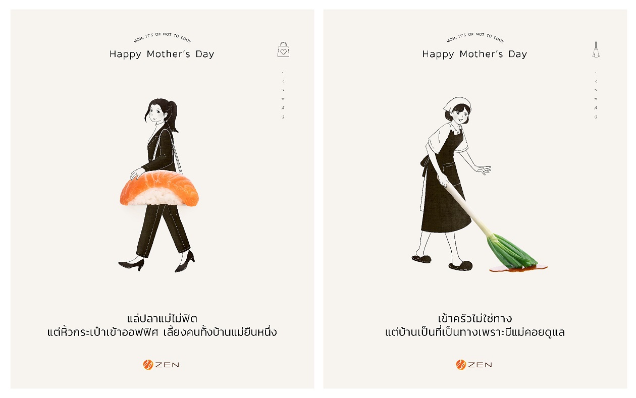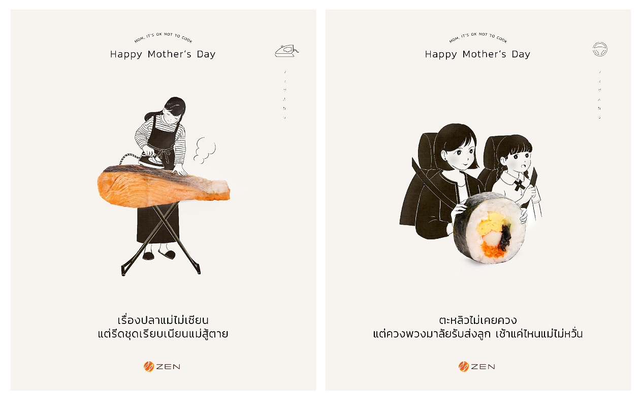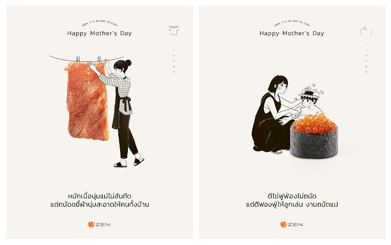 ในวันแม่ทุก ๆ ปี หน้าฟีดส์ Social คงเต็มไปด้วยโพสต์โชว์เมนูฝีมือแม่ที่คิดถึง หรือ TAG ถึงแม่ อวดแม่ครัวตัวมัมคนเก่ง แต่ ZEN Restaurant เจออินไซต์ที่ไม่เคยมีใครพูดถึงนั่นก็คือ ยังมี ‘แม่’ อีกหลายคน ที่ไม่ทำอาหาร หรือทำอาหารไม่เก่ง แต่แม่ทุกคนยัง ‘เก่ง’ อีกหลายด้าน โดยเฉพาะเรื่องที่ต้องทำเพื่อลูกรัก และเรื่องที่ลูกทุกคนต้องเคยแอบราคาจริงจากแม่เวลาพาไปกินข้าว ทั้งหมดนี้จะถูกนำมาครีเอท 2 แคมเปญจึ้งใจในช่วงวันแม่ปีนี้ด้วย