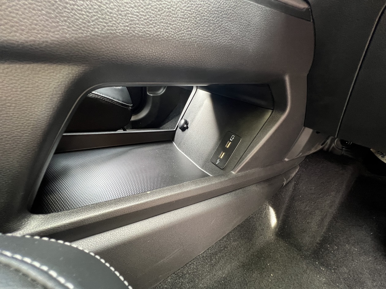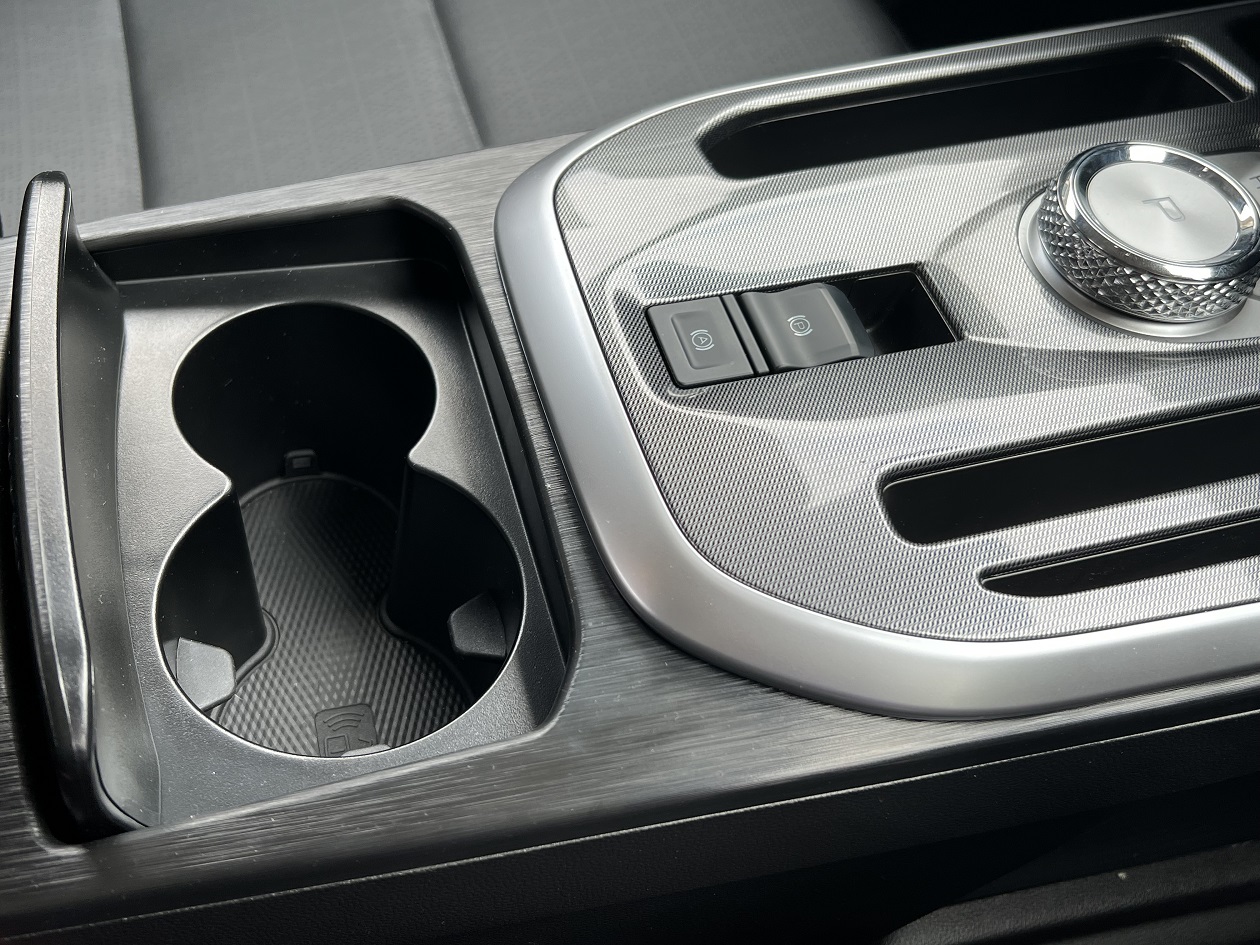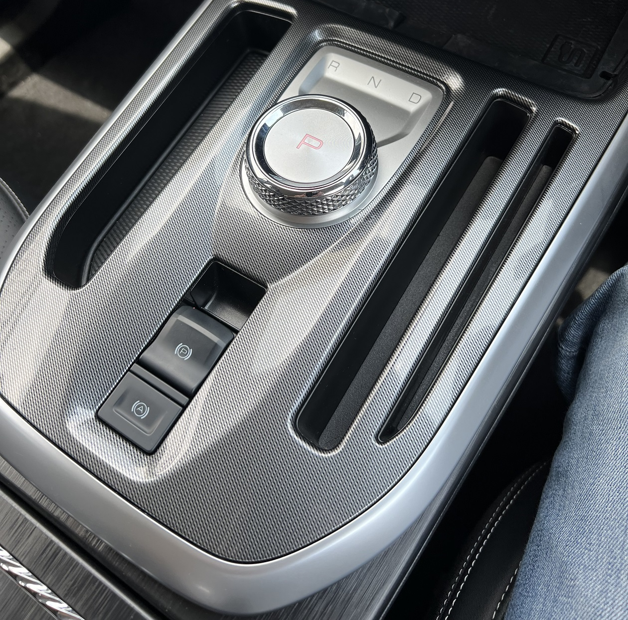 ช่องแอร์คู่กลางวางตำแหน่งไว้ต่ำไปหน่อย ถ้าอยากให้ลมแอร์เป่าหน้าต้องเปิดพัดลมให้แรงพอควร ถัดลงมาคอนโซลกลางจะเป็นแท่นชาร์จโทรศัพท์มือถือแบบไร้สาย ใกล้ๆ กันเป็น ปุ่มหมุนสีเงินสำหรับระบบขับเคลื่อน การทำงานเปลี่ยนตำแหน่งจาก N ไป D หรือ D ไป N ไป R ทำได้เร็วขึ้นกว่ารุ่นแรก แต่ก็ยังไม่รวดเร็วเท่าคันเกียร์แบบคันเลื่อนหรือปุ่มกดอยู่ดี ถัดมาอีกนิดเป็นที่วางแก้ว และเท้าแขนแบบ 2 ชั้น ด้านล่างซ่อนกล่องเก็บของขนาดใหญ่ มีปุ่มเบรคมือไฟฟ้า และปุ่ม Auto Hold Brake วางอยู่คู่กัน ด้านหลังมีช่องแอร์ให้ 2 ช่อง พร้อมจุดชาร์จมือถือแบบ USB ให้อีก 2 ช่อง สำหรับผู้โดยสารตอนหลัง