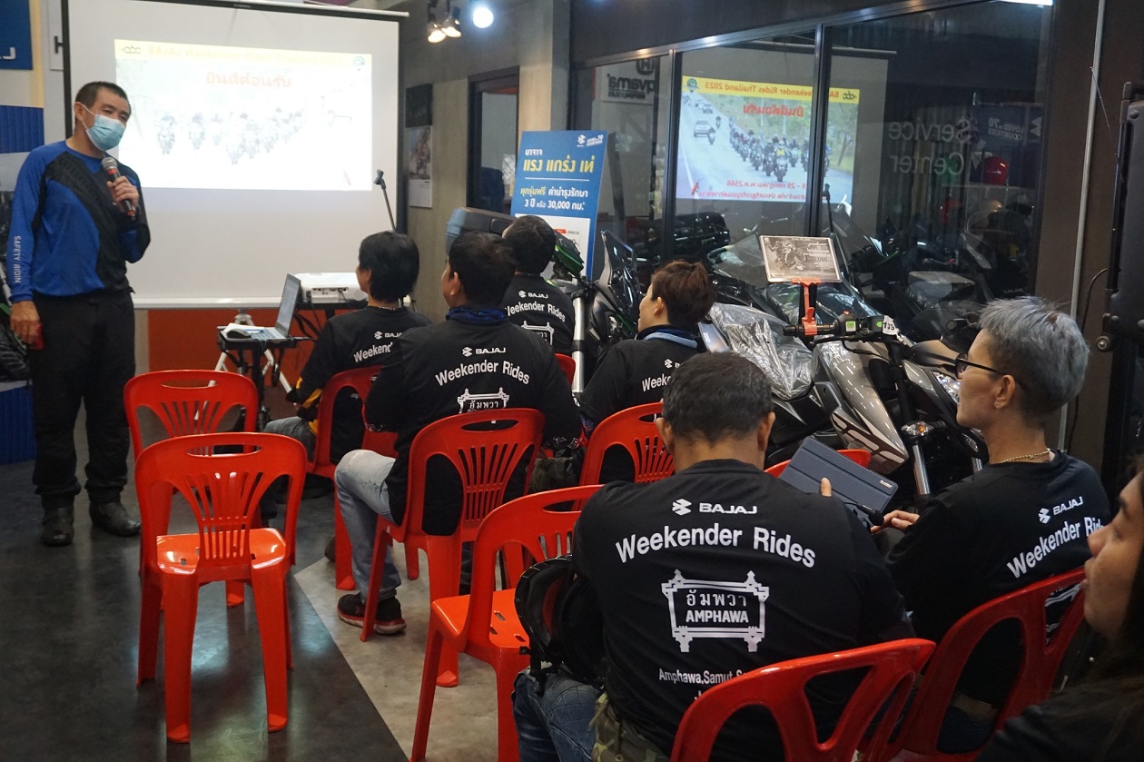 สำหรับทริปนี้จัดขึ้นเพื่อลูกค้า Bajaj Dominar โดยเฉพาะ ซึ่งมีผู้เข้าร่วมเดินทางสัมผัสประการณ์การขับขี่แบบทัวร์ริ่งท่องเที่ยวในครั้งนี้กว่า 28 คน โดยนัดหมายรวมตัวกันที่ บาจาจประเสริฐเจริญยนต์ สาขาอ้อมใหญ่ ตัวแทนจำหน่าย Bajaj ใน จ. นครปฐม เพื่อบรีฟเส้นทางและชี้แจงข้อมูลสำคัญสำหรับการขับขี่เป็นขบวนเพื่อความปลอดภัยของสมาชิกทุกท่าน โดยผู้ดูแลการเดินทางมืออาชีพจากบาจาจ
