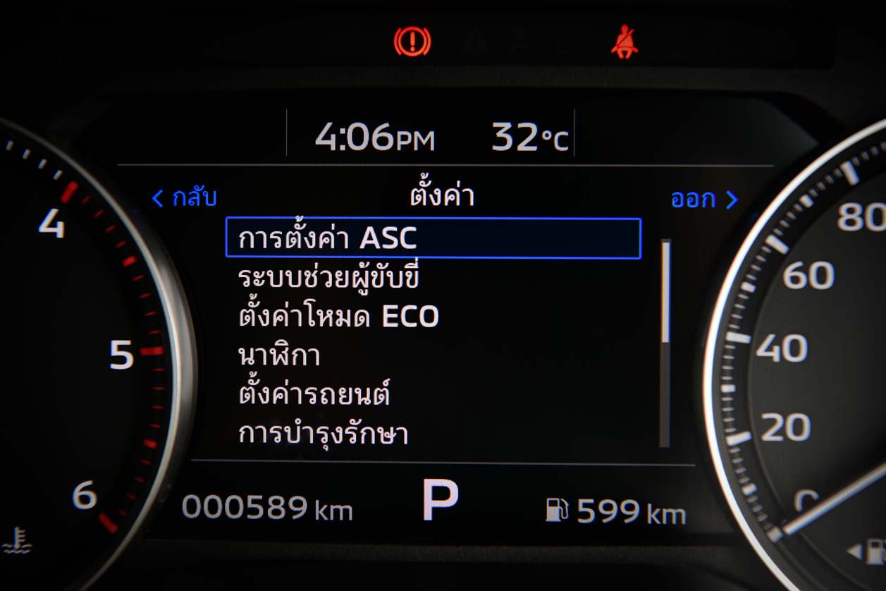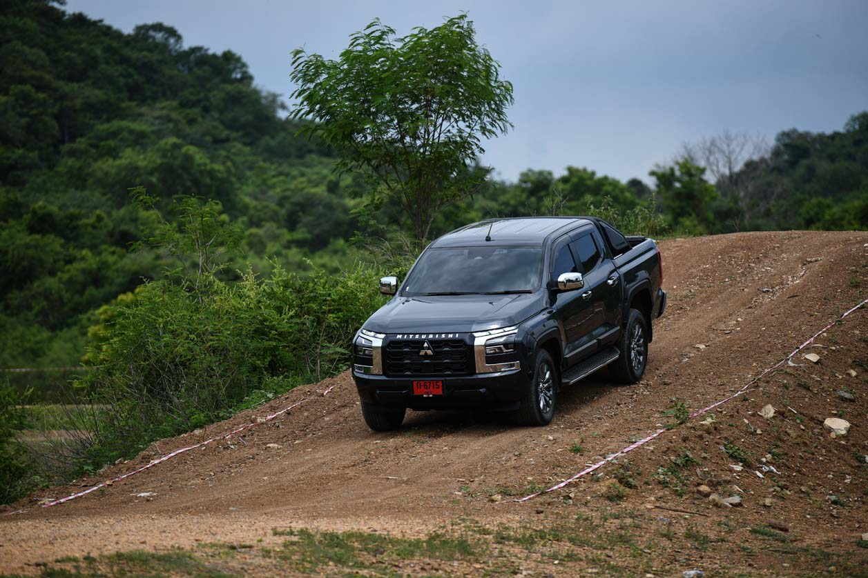 พอมาในช่วงบ่าย เราจะได้มีโอกาสทดลองการใช้งานบนเส้นทางที่เป็นพื้นลูกรัง มีเนินสูง-ต่ำ พื้นเป็นหลุมบ่อ รวมไปถึงสถานีที่วิ่งวนเป็นเลข 8 เพื่อทดลองดูระบบตัวช่วยให้เกิดความปลอดภัยในขณะขับขี่ โดยรถรุ่นนี้จะติดตั้งระบบควบคุมเสถียรภาพการทรงตัวเพื่อป้องกันการลื่นไถลออกนอกเส้นทาง ระบบป้องกันล้อหมุนฟรีและควบคุมการลื่นไถล ให้การหมุนของล้อทั้ง4 มีความสมดุลในสภาวะที่ถนนลื่น ขรุขระ หรือทางลาดชัน นอกจากนี้ยังมีระบบป้องกันล้อหมุนฟรี แอคทีฟ ลิมิเทดสลิพแบบควบคุมด้วยระบบเบรก จะทำงานเมื่อล้อข้างใดเกิดอาการหมุนฟรี ระบบจะสั่งเบรกทำงานที่ล้อนั้น และถ่ายกำลังไปยังล้ออีกข้างหนึ่งเพื่อให้สามารถขับผ่านอุปสรรคไปได้อย่างปลอดภัย