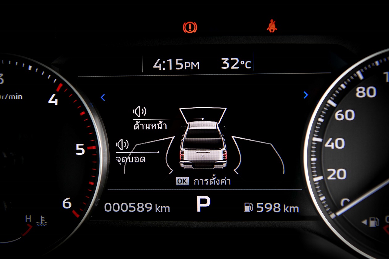 การขึ้นเนินลาดชันในขณะที่ใช้ความเร็วไม่เกิน 10 กม./ชม. เราสามารถเปิดกล้องมองใต้ท้องรถด้านหน้าเพื่อดูอุปสรรคหรือสิ่งกีดขวางในขณะขึ้นลงเนินที่เรามองไม่เห็นได้อย่างสะดวกและปลอดภัย แต่เดมื่อเราใช้ความเร็วเกิน 10 กม./ชม. ภาพก็จะตัดไปเพื่อไม่ให้เสียสมาธิในการขับขี่ ซึ่งต้องของชมว่าจอภาพ HD ขนาด 9 นิ้ว ให้ภาพที่ชัดเจนและคมชัดมากๆ แต่ในรุ่นรองทอพนี้จะไม่มีระบบช่วยชะลอความเร็วในขณะลงเนินชันๆ ซึ่งจะติดตั้งอยู่ในรุ่นทอพขับเคลื่อน 4 ล้อเท่านั้น แต่จะมีระบบกันรถไหลลงในช่วงสั้นๆ ขณะขับขึ้นเนินมาให้